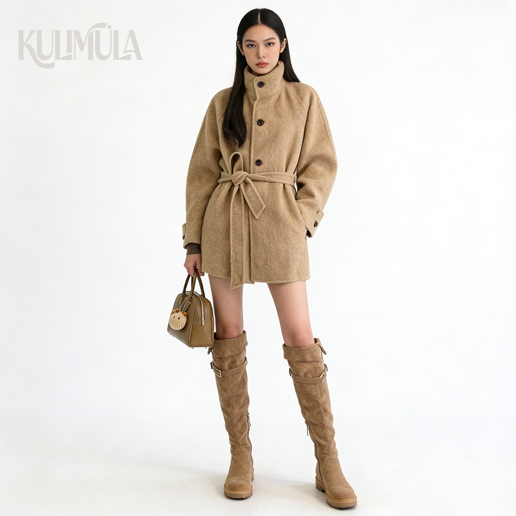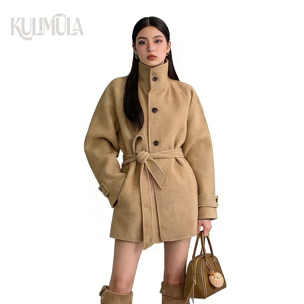 KULIMULA เสื้อคลุมขนสัตว์ผู้หญิง สีเบจอบอุ่น ผ้าขนสัตว์นุ่มสบาย สไตล์คลาสสิกสุดหรู เหมาะกับฤดูหนาว YD2
