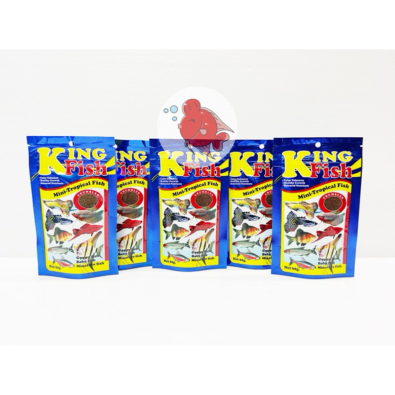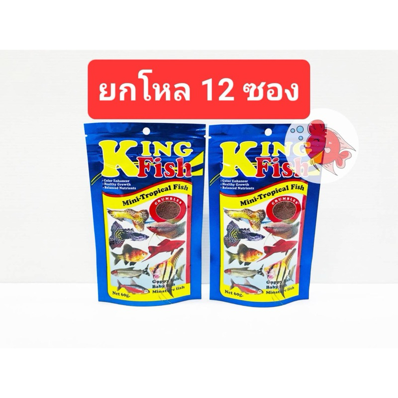 อาหารปลา คิงฟิช (ยกโหล12ซอง) King Fish Mini Tropical สำหรับ ปลาหางนกยูง ปลาสอด ปลาบอลลูน ปลาขนาดเล็ก ปลาแรกเกิด แบบเกล็ด