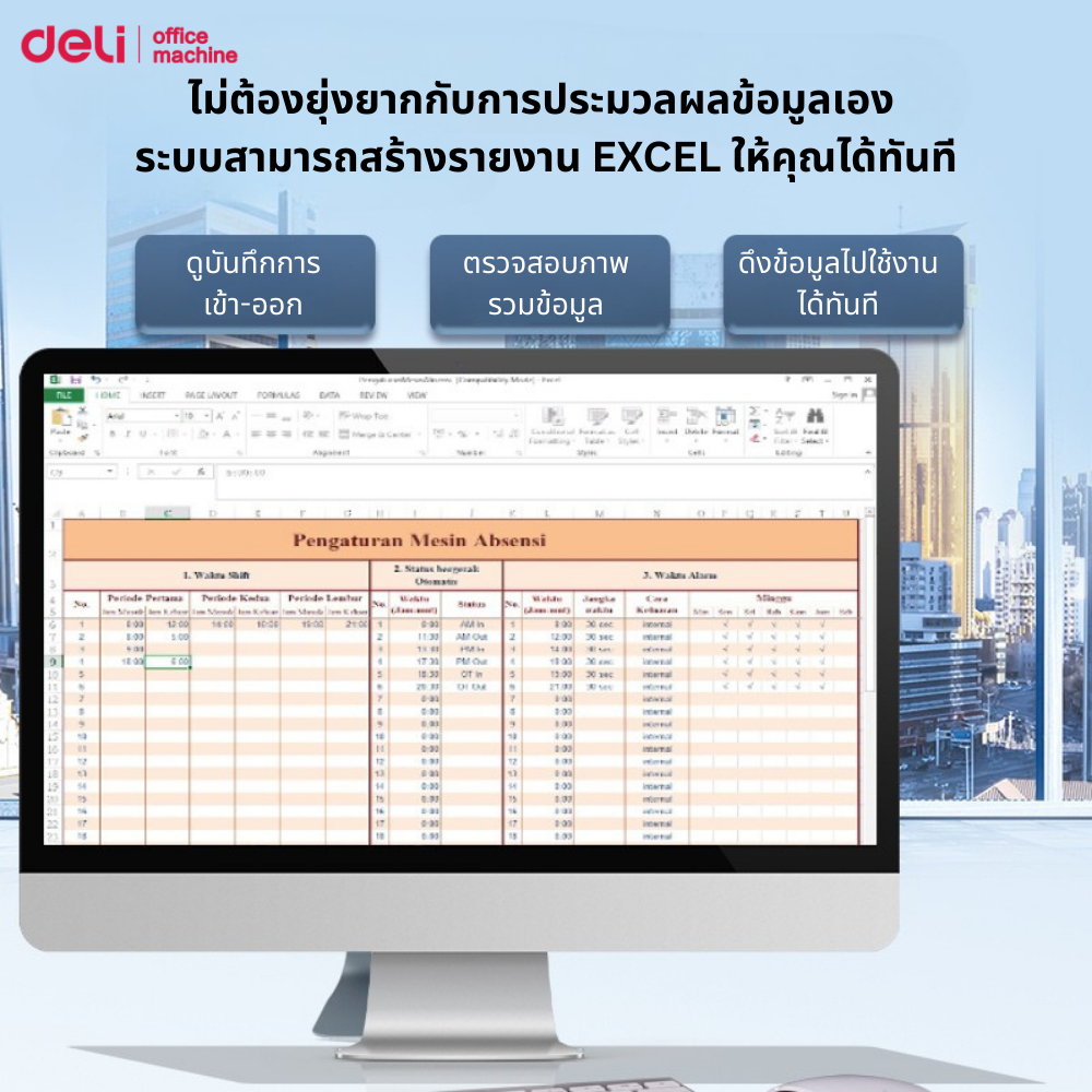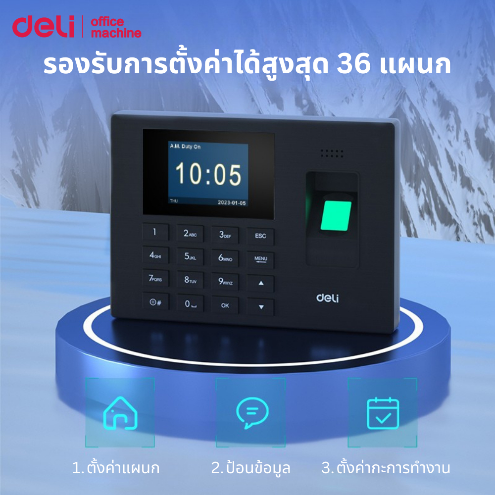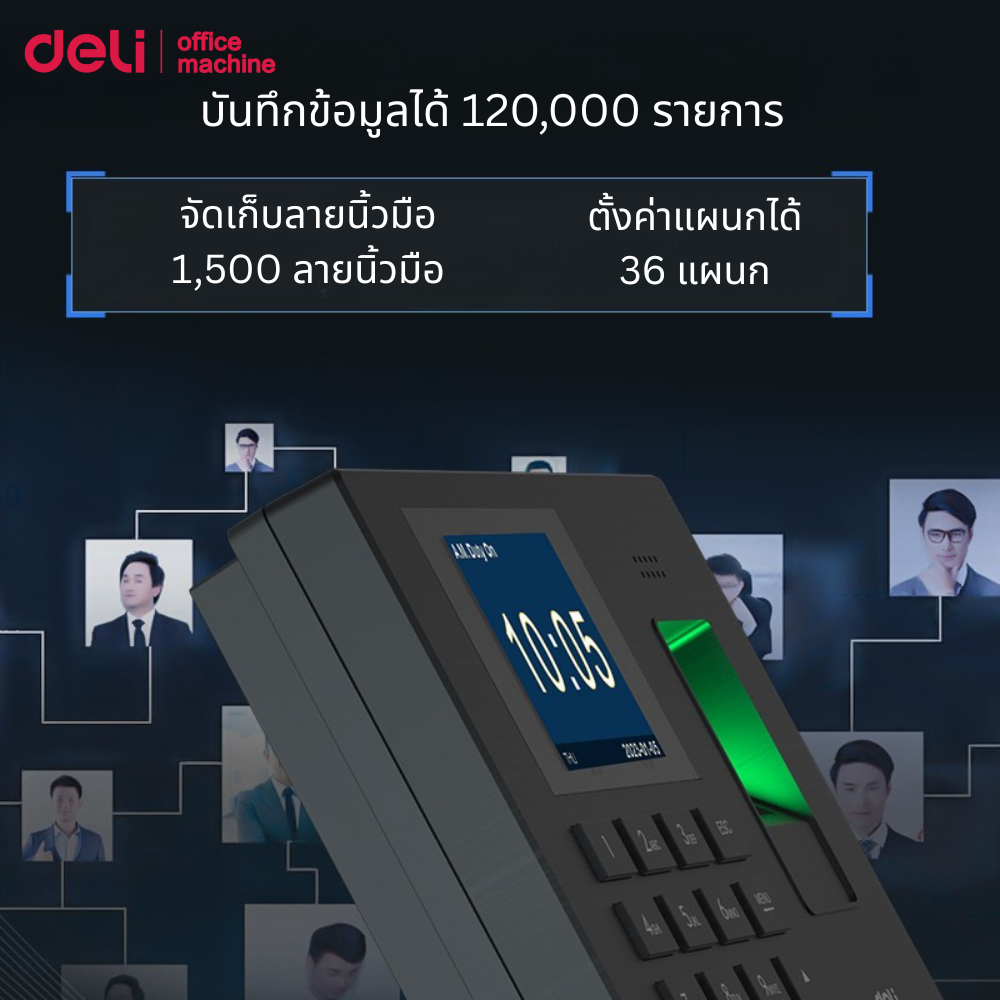 Deli เครื่องสแกนเข้างาน สแกนใบหน้า ลายนิ้วมือ ดึงข้อมูลผ่านUSB รายงานผลผ่านExcel Attendance Machine