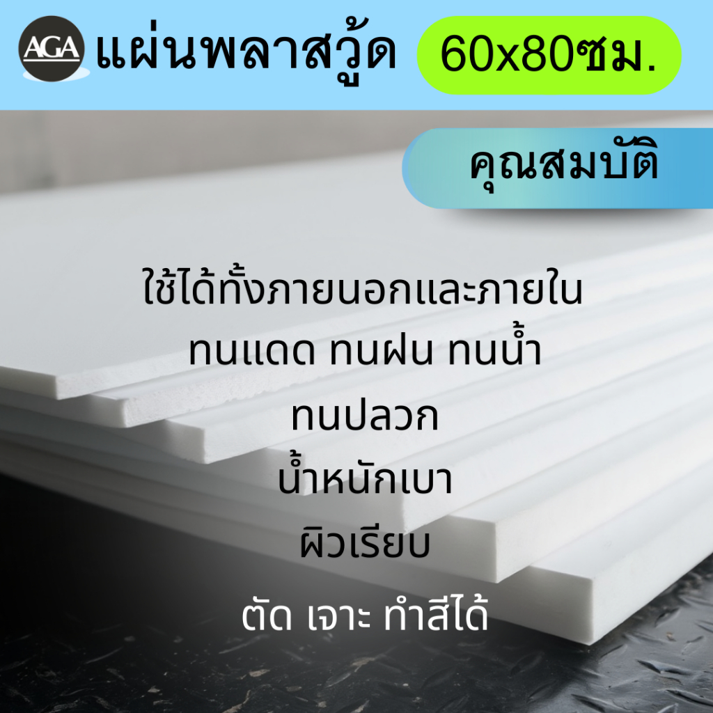 แผ่นพลาสวูด 60x80ซม. | Plaswood สีขาว | PVC Foam Board 3/5/10mm | ผิวเรียบ ทนแดด กันน้ำ เบา | งาน DIY งานฝีมือ งานป้าย