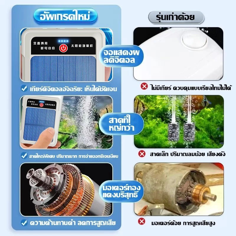 【รุ่นใหม่ปี2025】ปั้มออ๊กซิเจน โซล่าเซลล์ ฟองสม่ำเสมอและหนาแน่น ปั๊มออกซิเจนตู้ปลา ออกซิเจนปลา อ็อคซิเจนพกพา อ๊อกซเจนพกพา