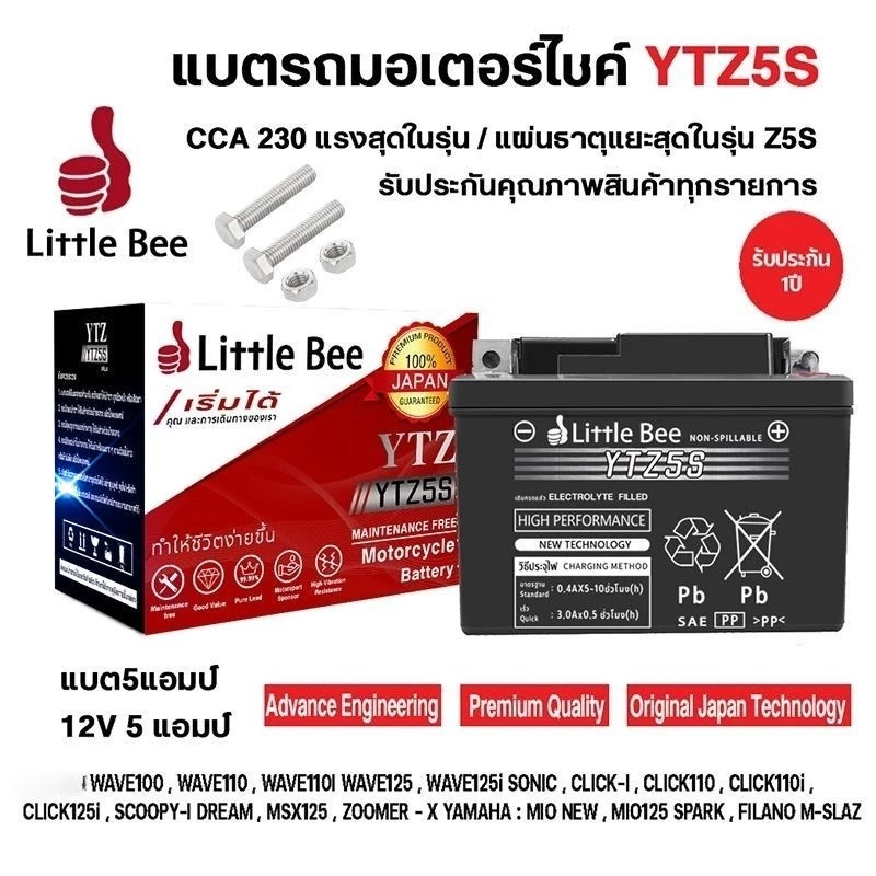 🔥รับประกัน 1 ปี แบต 5 แอมป์ YTZ5s12v5ah YTZ7s แบตมอไซ เวฟ110i แบตแห้ง wave dream click msx scoopy zoomer fino