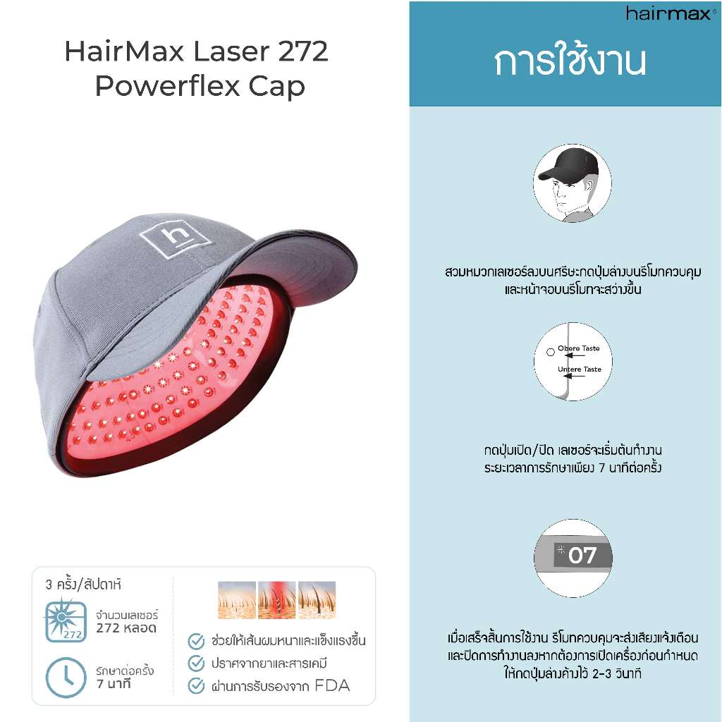 HairMax Laser 272 Power Flex Cap - หมวกเลเซอร์ 272 หลอด เลเซอร์เกรดการแพทย์