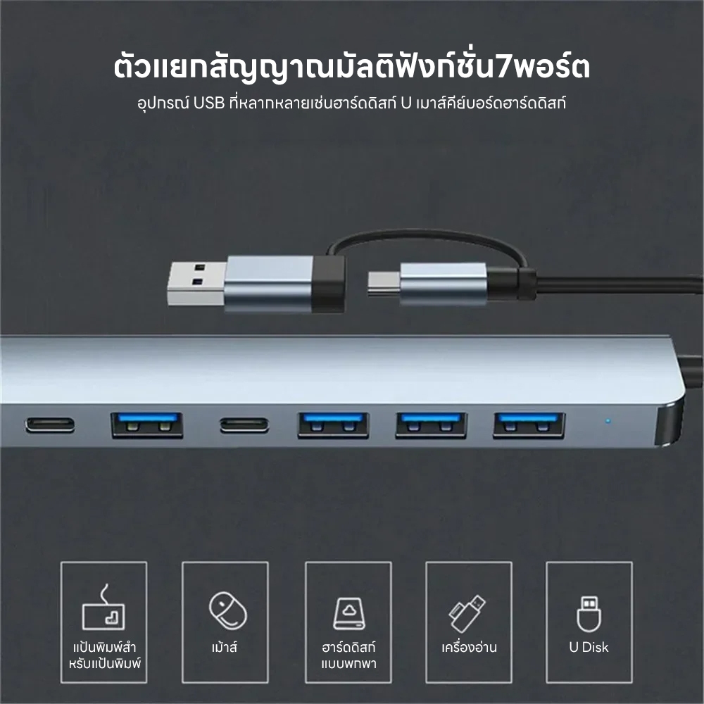 Upliftish USB hub 4/7/8/11 in1 อะแดปเตอร์ฮับ Type-C 5 พอร์ต TF/SD Reader สําหรับแล็ปท็อป/คอมพิวเตอร์