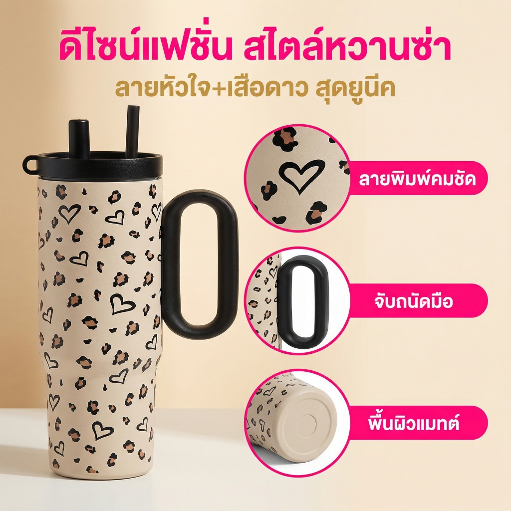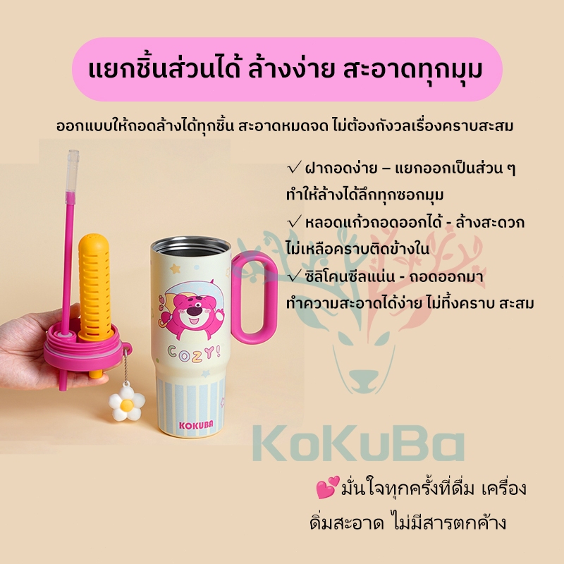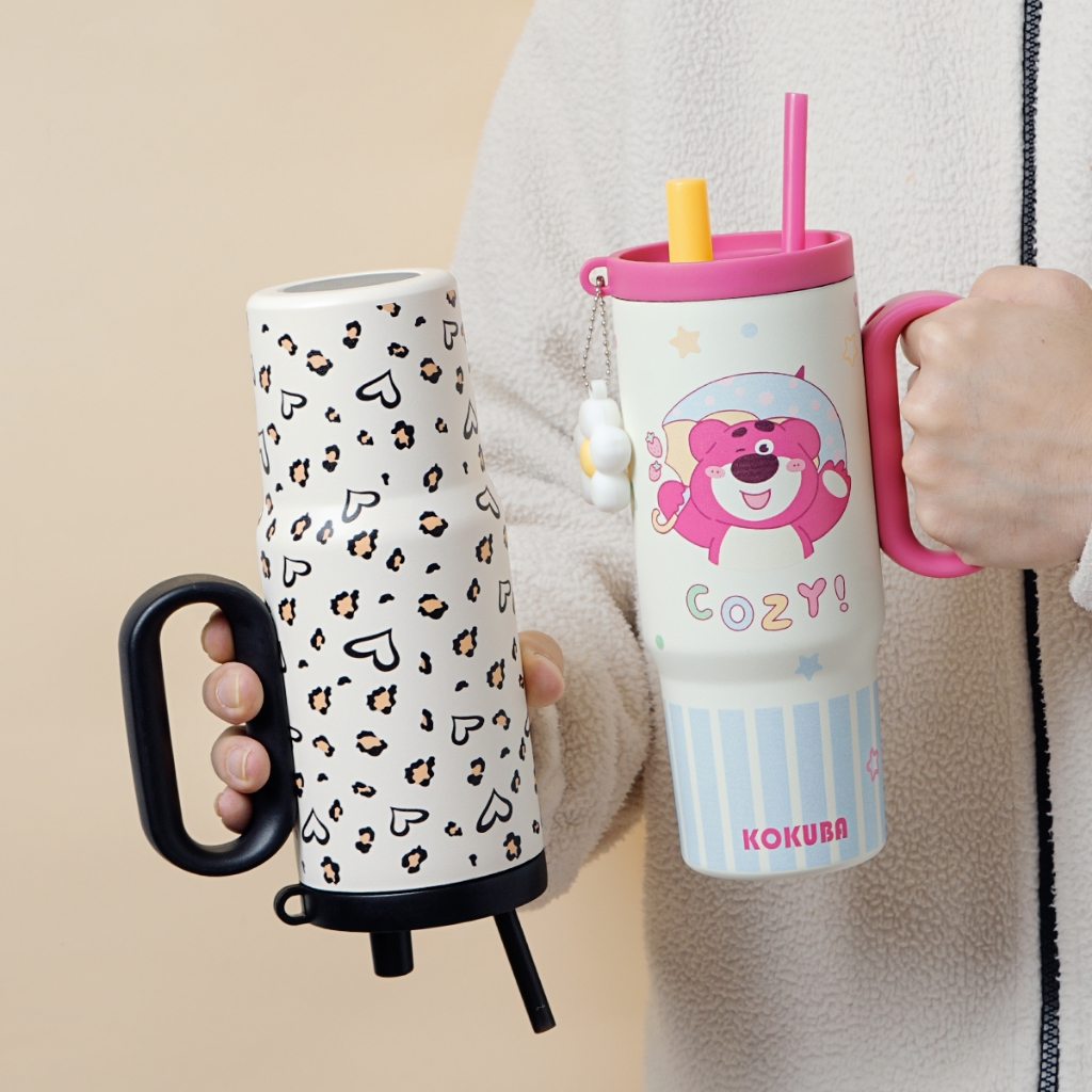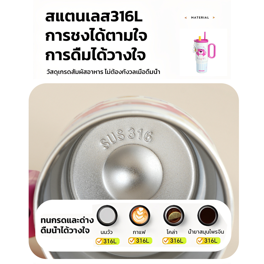 ของขวัญวันวาเลนไทน์🎁 แก้วเก็บความเย็น/ร้อน 316 สแตนเลสพร้อมหลอด 750ML แก้วกาแฟ ลายหมีสตรอเบอร์รี่