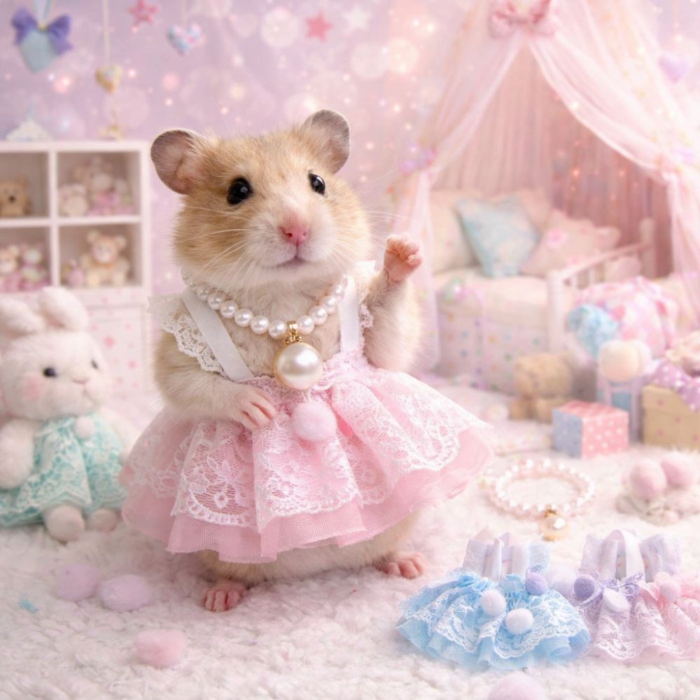 ชรอม กระโปรงลูกไม้หนูแฮมสเตอร์สวยสบายเสื้อกั๊กสัตว์เลี้ยงขนาดเล็กชุดหนูแฮมสเตอร์กับสร้อยคอมุกทําด้วยมือสัตว์ชุดเจ้าหญิงสัตว์เลี้ยงถ่ายเท