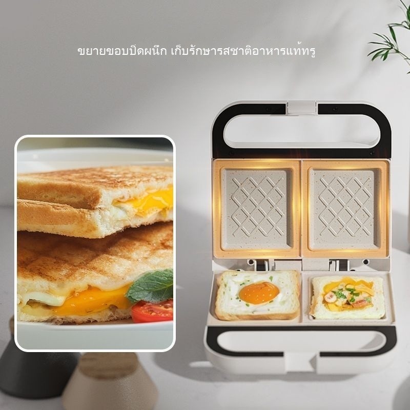 จานคู่แซนวิชเครื่องทําอาหารเช้าครัวเรือนมัลติฟังก์ชั่วาฟเฟิลแสงเครื่องทําอาหารเครื่องทําขนมปังขนาดเล็ก