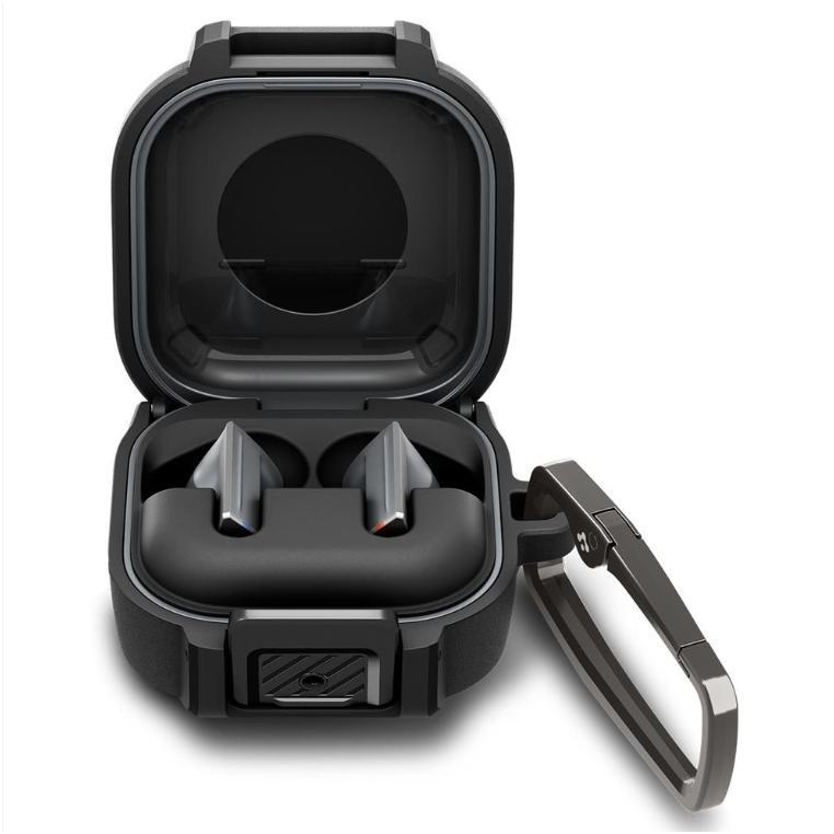Spigen - เคสล็อคฟิตพร้อมคาราบิเนอร์สําหรับ galaxy buds 4 / 4 pro สีดํา