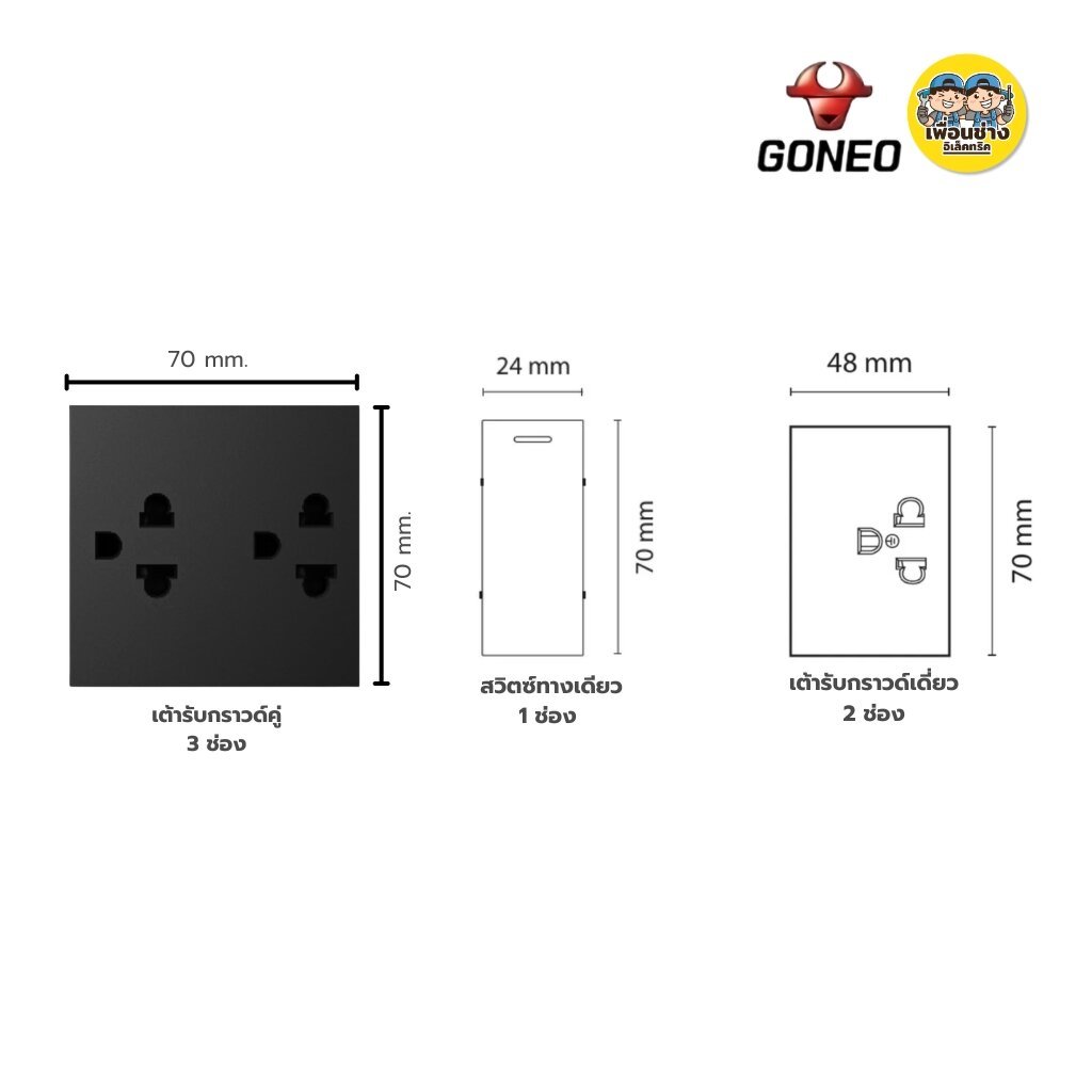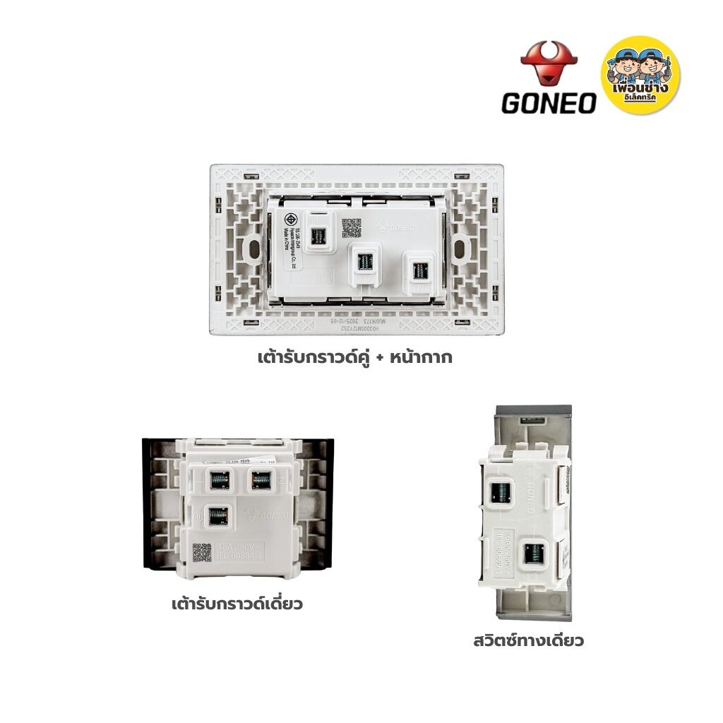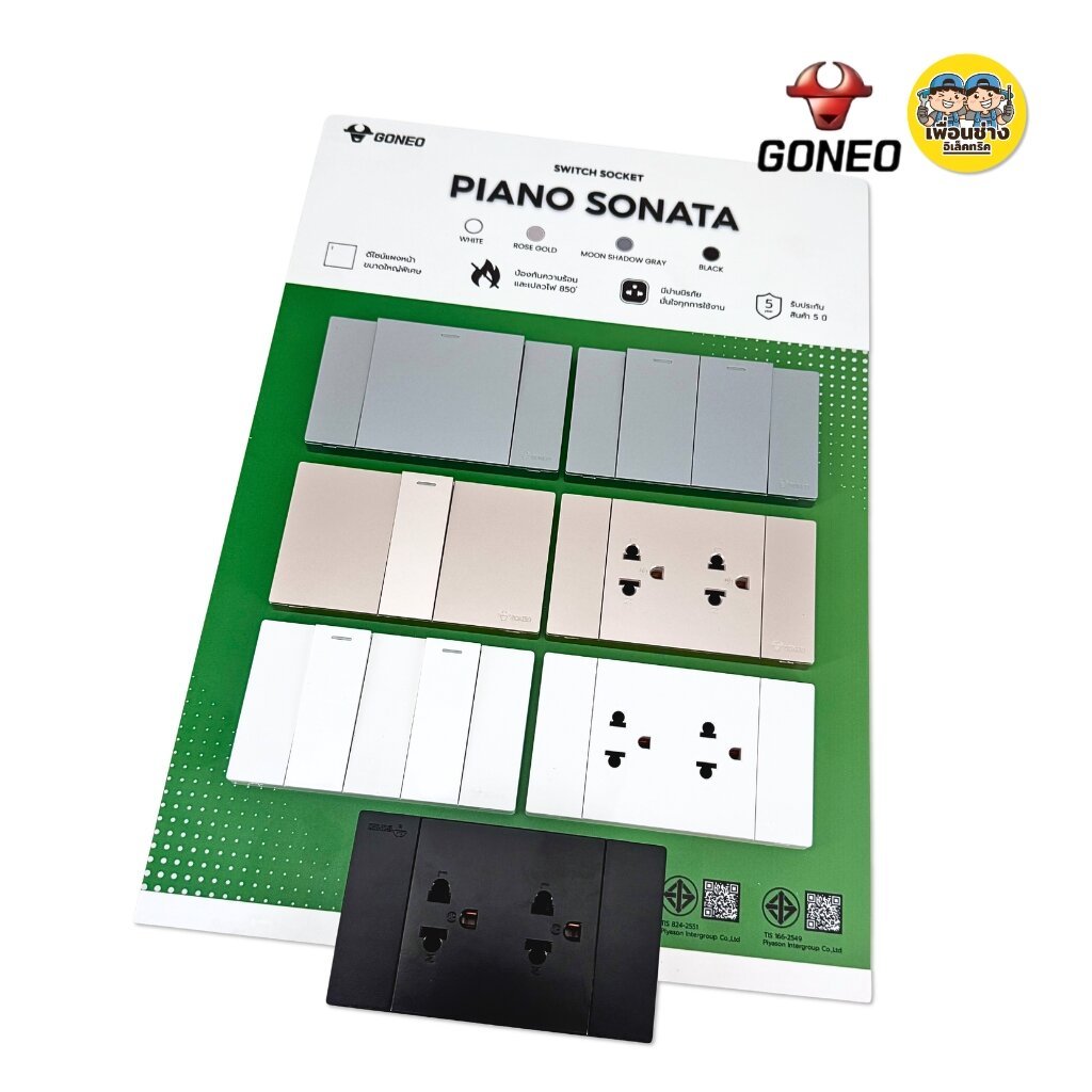 GONEO ชุดเต้ารับพร้อมหน้ากาก + บล็อกฝัง NANO ขนาด 2x4 รุ่น PIANO SONATA G25 สวิตซ์ กราวด์เดี่ยว กราวด์คู่ ปลั๊ก