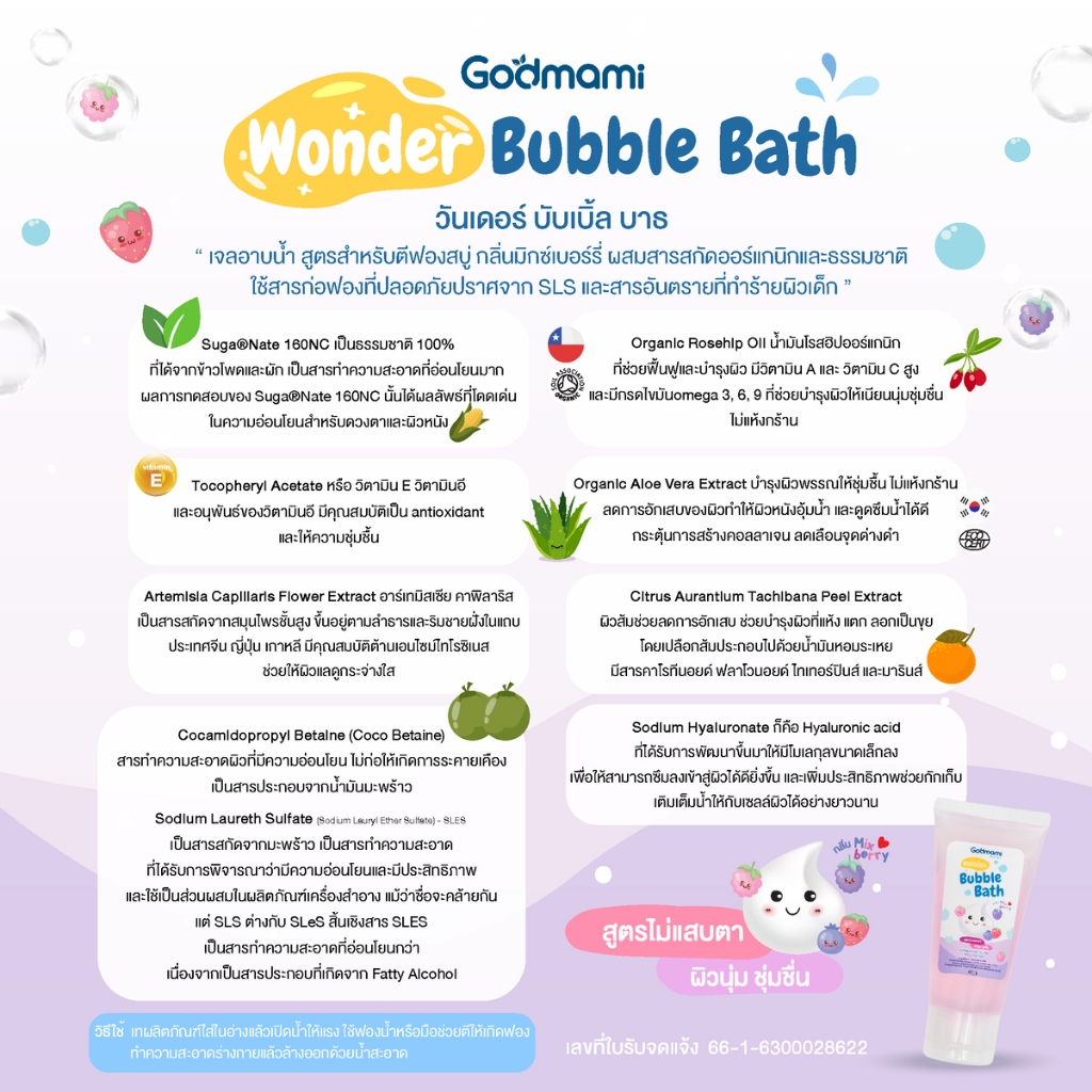 Godmami บับเบิ้ลบาธ สบู่ตีฟอง สบู่ทำฟอง สำหรับเด็ก ไม่แสบตา กลิ่นมิกซ์เบอรี่ ฟองอยู่นาน
