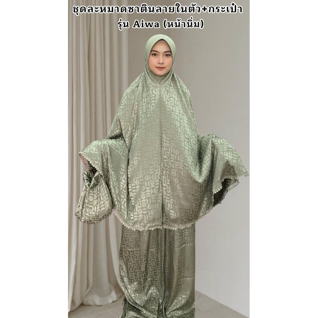 ชุดละหมาดซาติน รุ่น 𝐀𝐢𝐰𝐚 (พร้อมกระเป๋า)💞