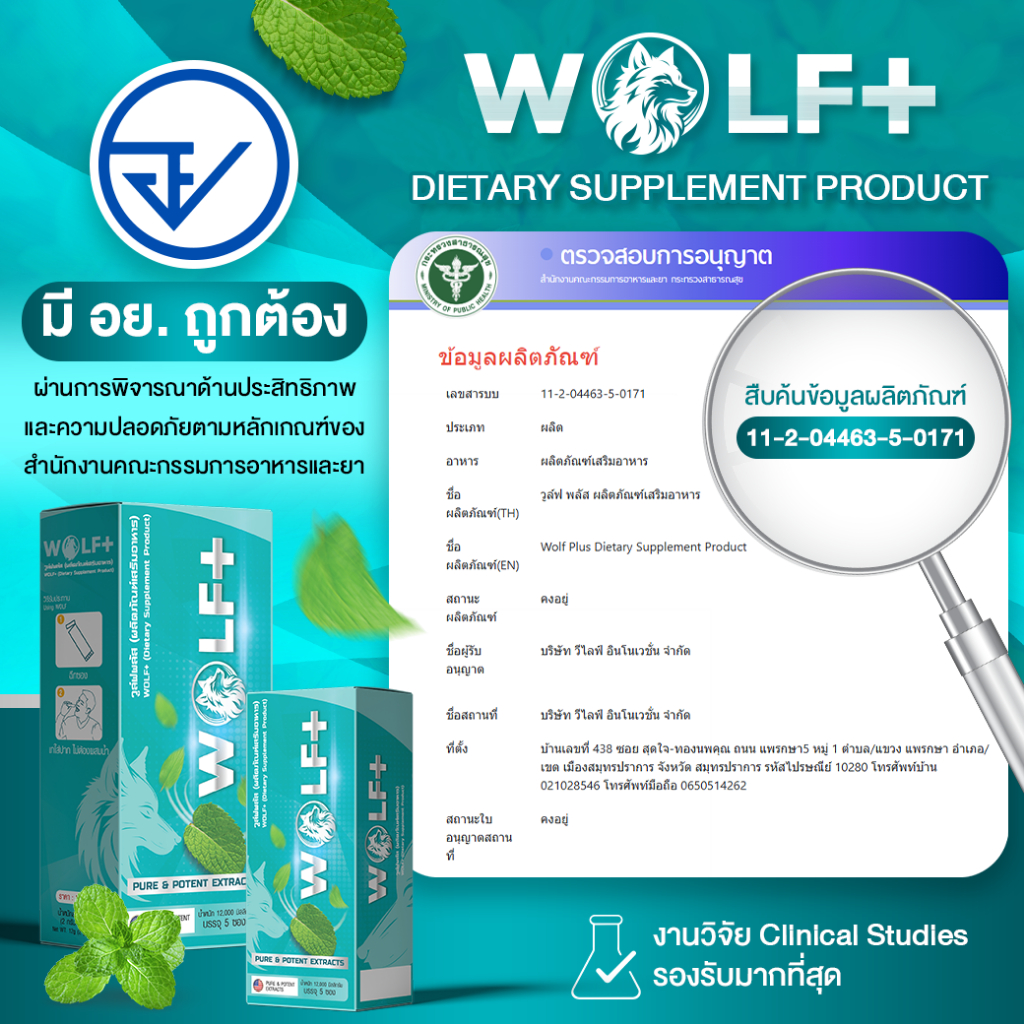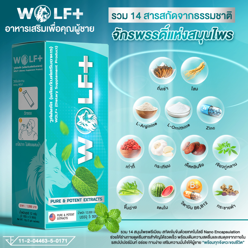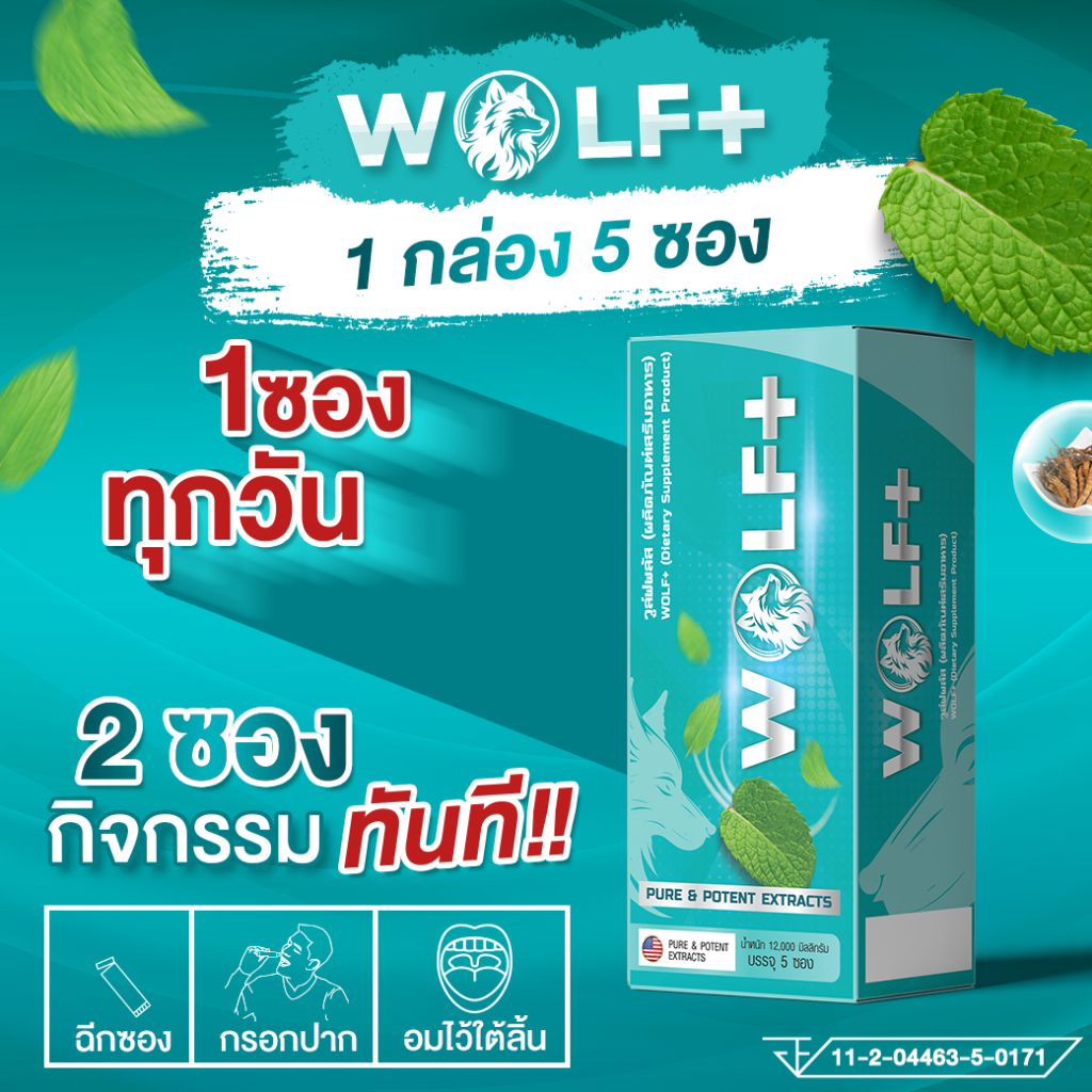 WOLF+ 5 แถม 3 อาหารเสริมวูล์ฟพลัส รวมราชาสมุนไพรเกรดพรีเมียม 14 ชนิด รสมิ้นท์ (1กล่อง/5ซอง)
