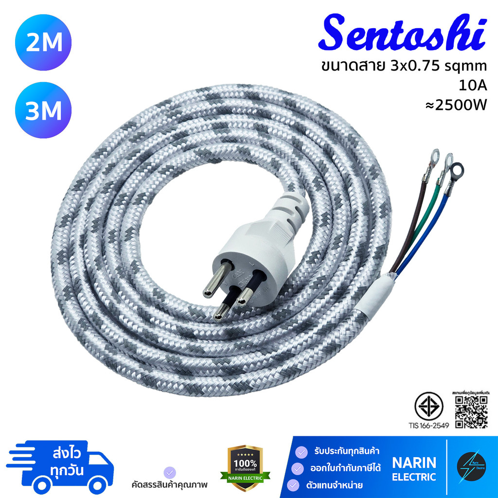สายเตารีด Sentoshi สายถักทนความร้อน มี มอก. 2M / 3M 3x0.75 sqmm สายไฟเตารีดถัก | พร้อมหางปลาเปลี่ยนง่าย