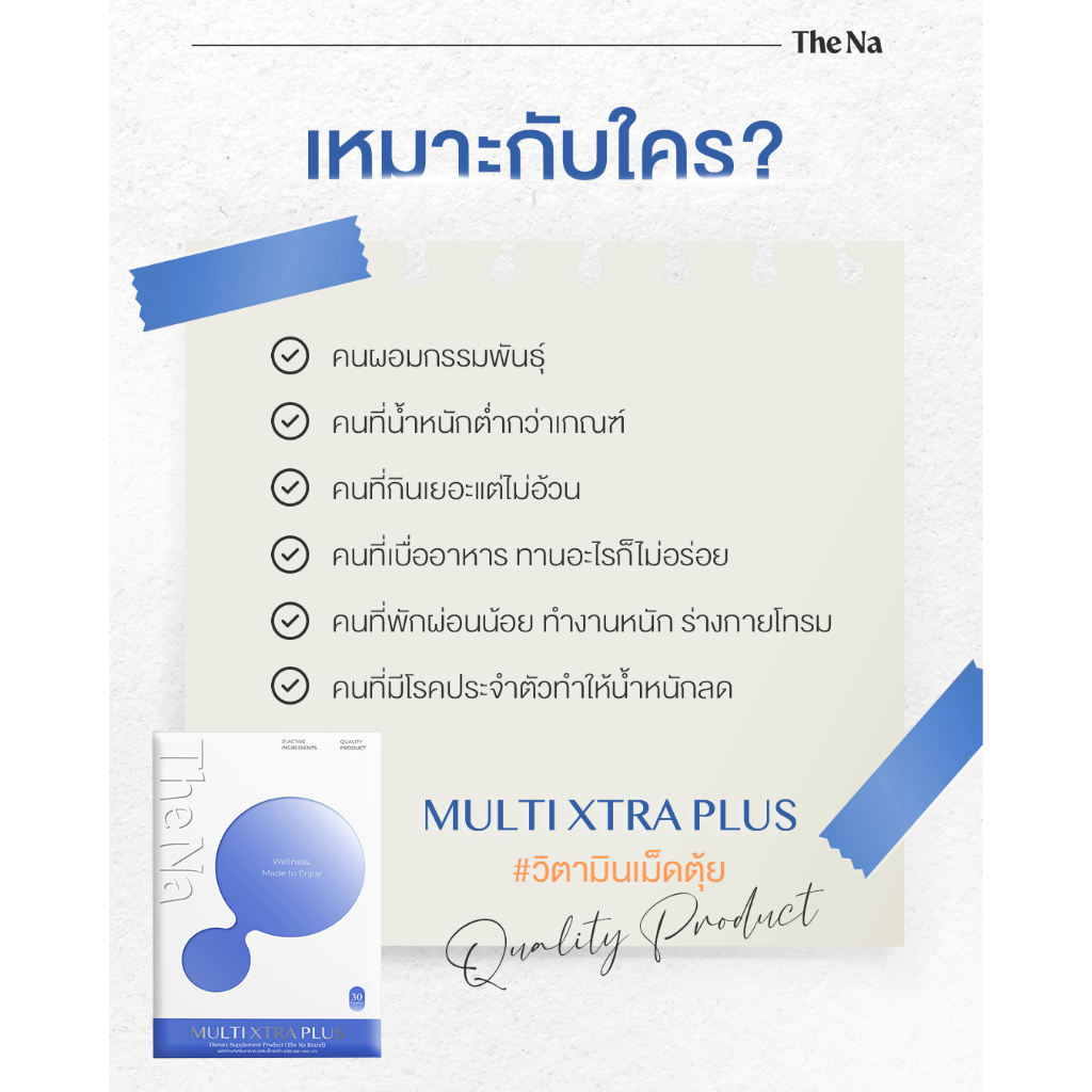 The Na Multi Xtra Plus วิตามินรวม 30 เม็ด/ก. เพิ่มน้ำหนัก เจริญอาหาร เบื่ออาหาร มีน้ำมีนวล มีกล้าม