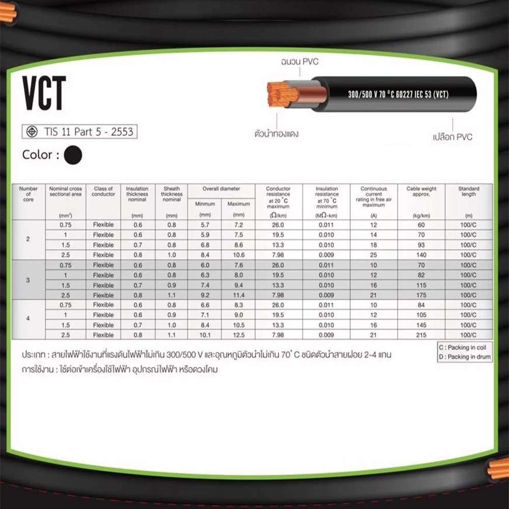 (ส่งด่วนในวัน)สายไฟ VCT IEC53 แบ่งขายเป็นเมตร 2x1 2x1.5 2x2.5 3x1 3x1.5 3x2.5 ยี่ห้อ ICON, KTO มอก.