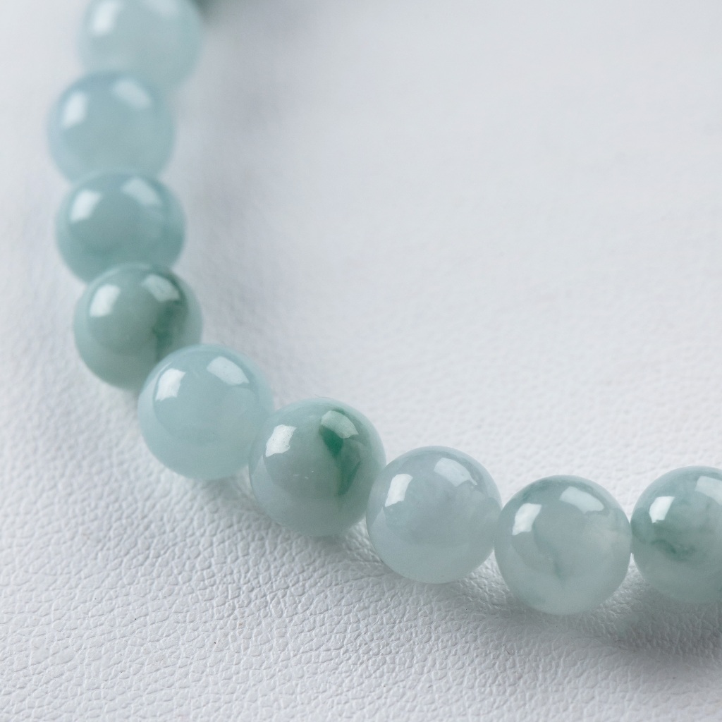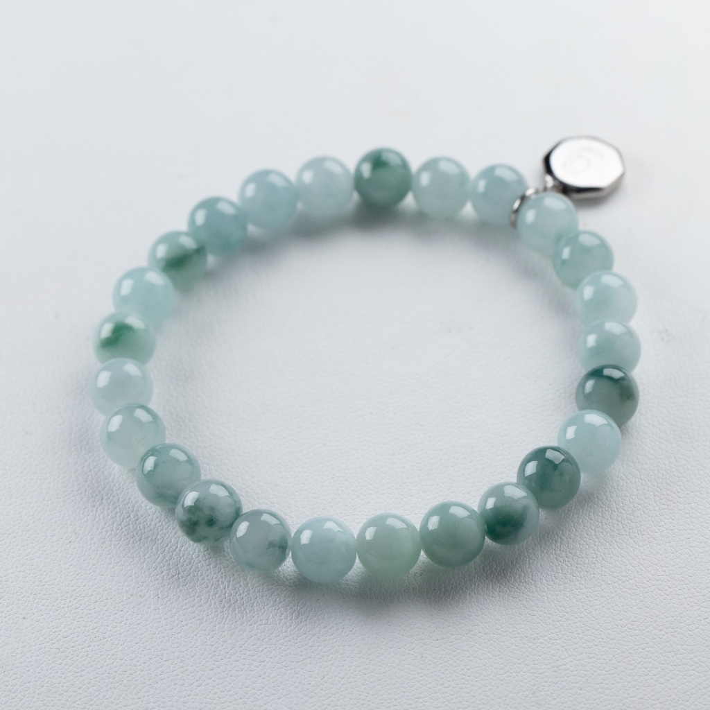 สร้อยแขนหยกขาวปนเขียว Moss (พม่า) 7.5 mm. - JADE FOR YOU