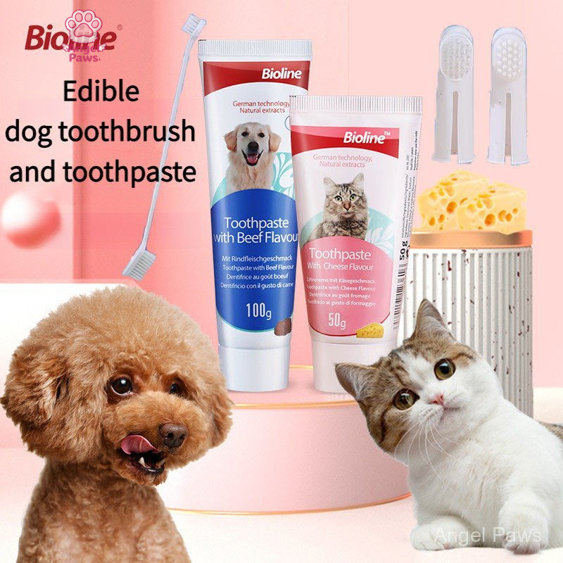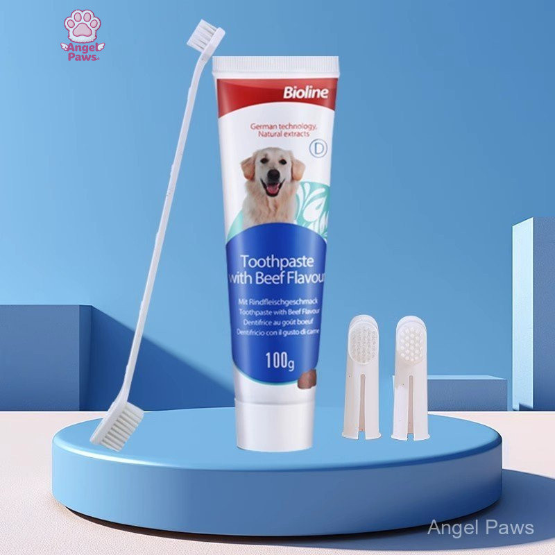 Bioline ชุดแปรงฟันสัตว์เลี้ยง 100g ชุดแปรงฟัน ปากสะอาด ลดการสะสมของหินปูน จากเยอรมนี ยาสีฟันสำหรับสัตว์เลี้ยง