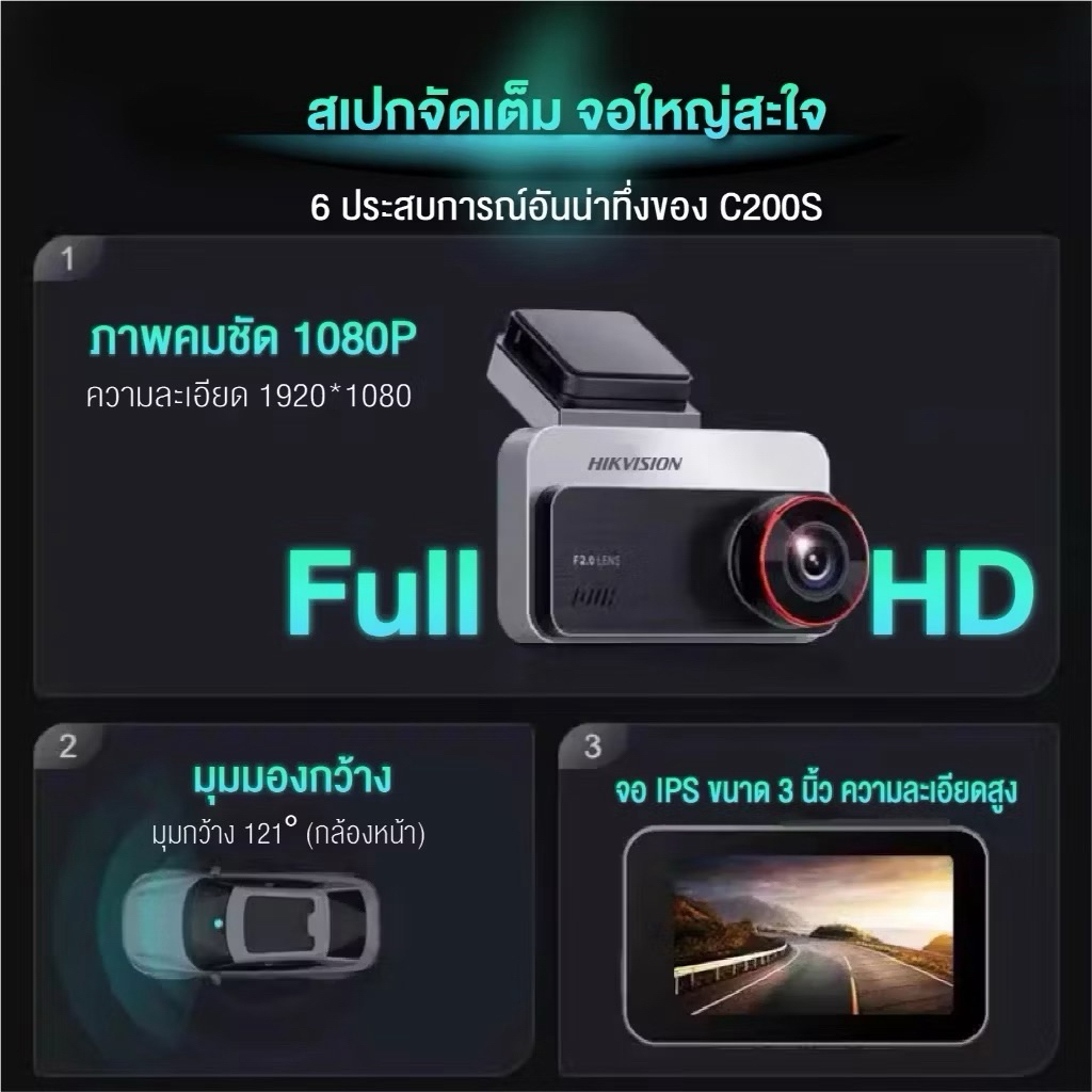 HIKVISION C200S Dash Cam Car Camera กล้องติดรถยนต์หน้า+หลัง 1080P Full HD+1080P +Wi-Fi ในตัว เลนส์หมุนได้ จอใหญ่ 3 นิ้ว