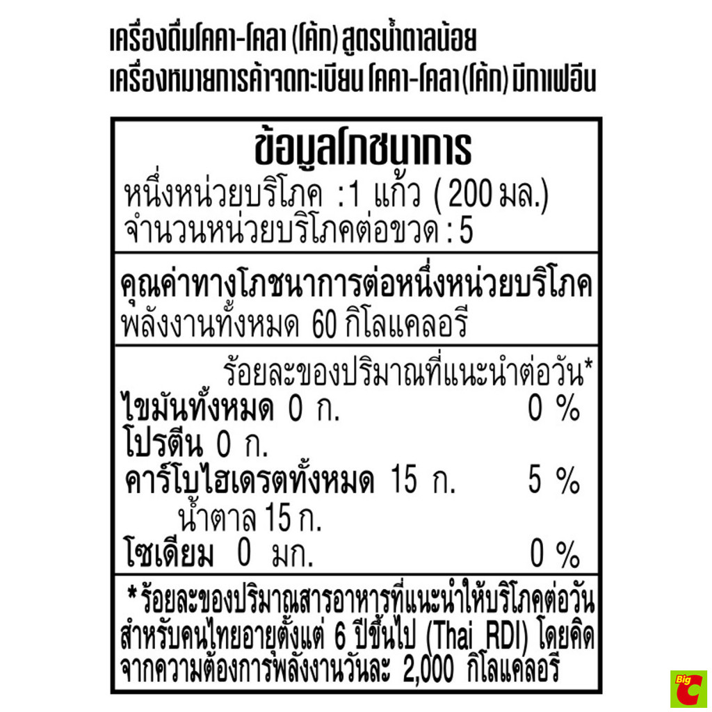 โค้ก น้ำอัดลม รสออริจินัล สูตรน้ำตาลน้อยกว่า 1 ล.