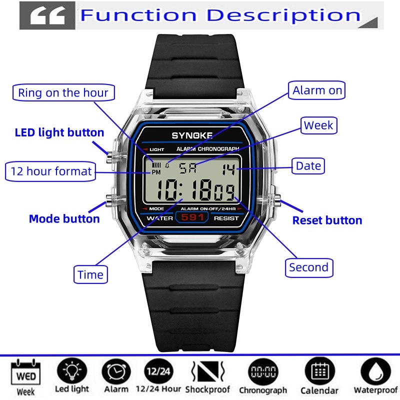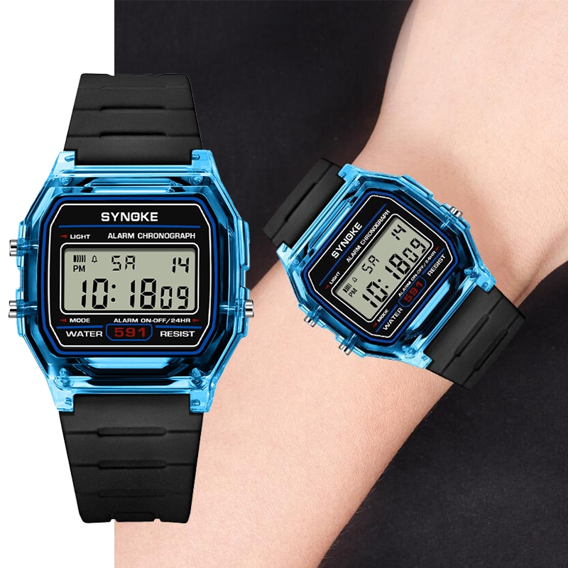 Synoke Unisex นาฬิกาดิจิตอลจอแสดงผล 12 24 ชั่วโมงแฟชั่นสายรัด PU กันน้ํา LED Chronograph นักเรียนทหารนาฬิกาข้อมือกีฬา