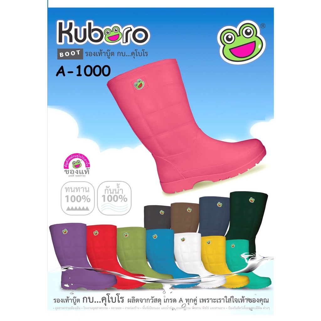 รองเท้าบูทกบ Kuboro A-1000 12 นิ้ว size9-12 #1ถูกสุด Colorful Rubber Boots บู้ต บู้ทตลาดสด A1000 บูท