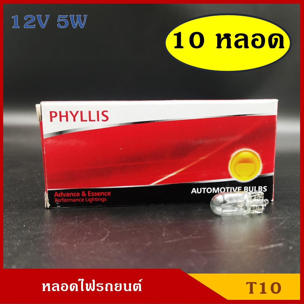 PHYLLIS หลอดไฟ T10 12V 24V 5w หลอดไฟรถยนต์ หลอดไฟเสียบ ราคา (10หลอด) กล่องละ