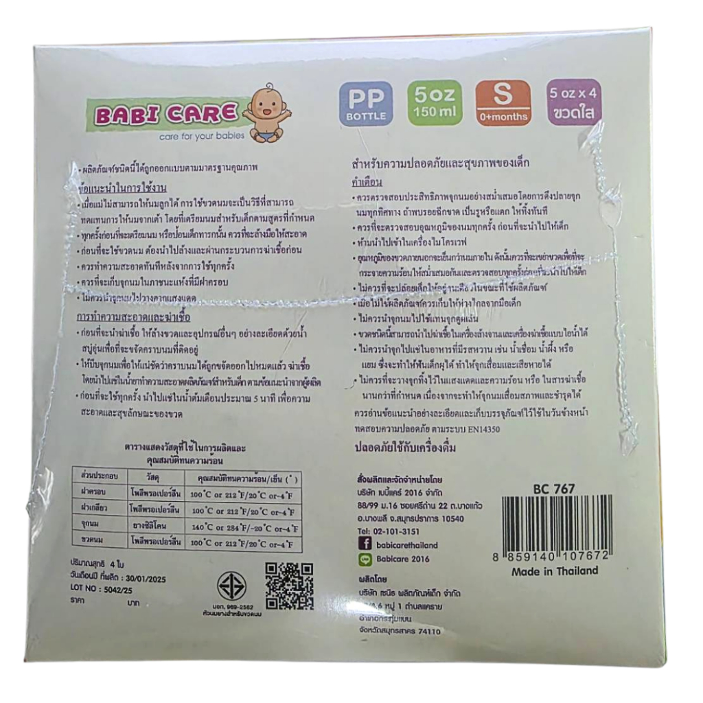 [แพ็ค4ขวด] BABI CARE ขวดนมคอแคบ เบบี้แคร์ ขวดนมเด็ก PP (ขนาด 4/9 ออนซ์)