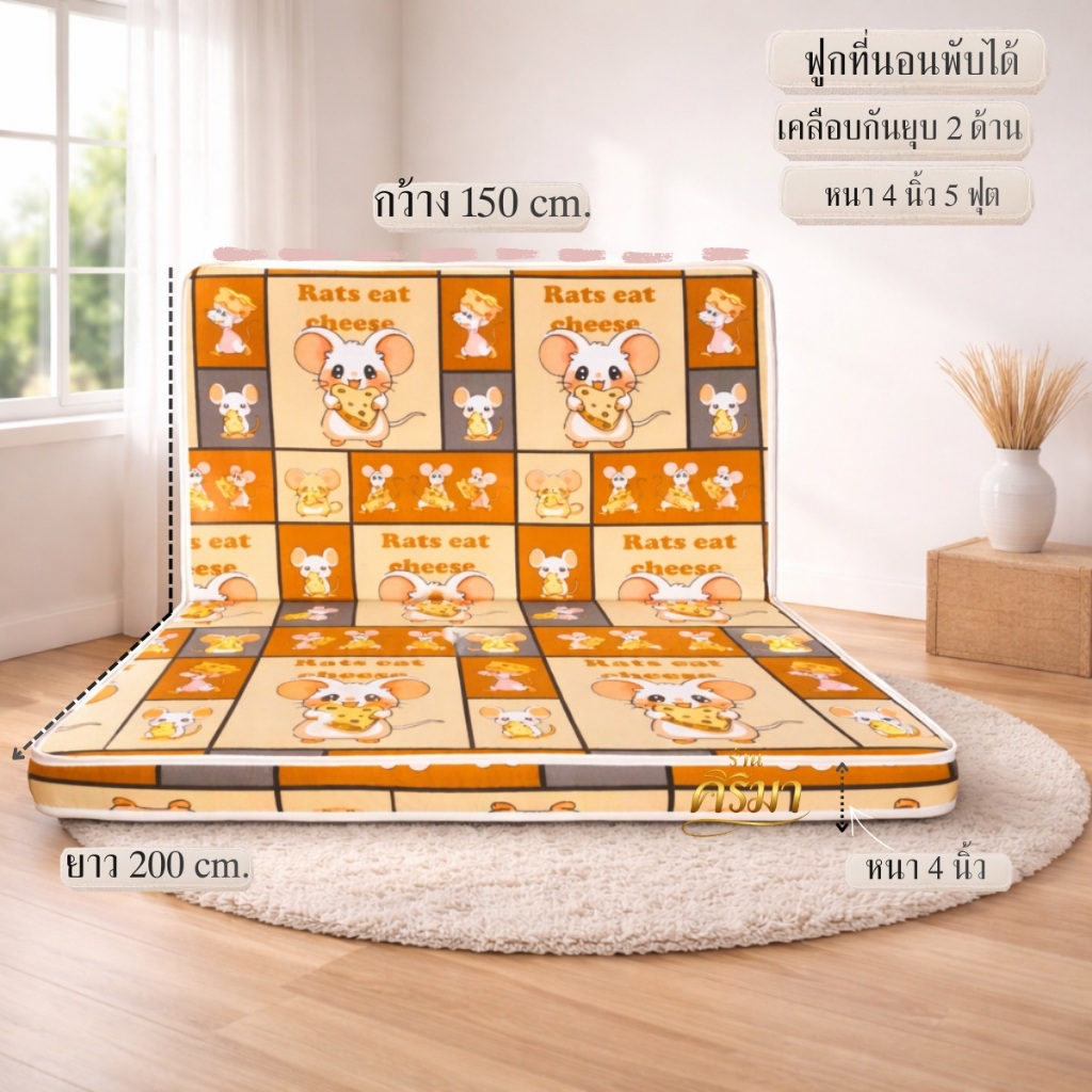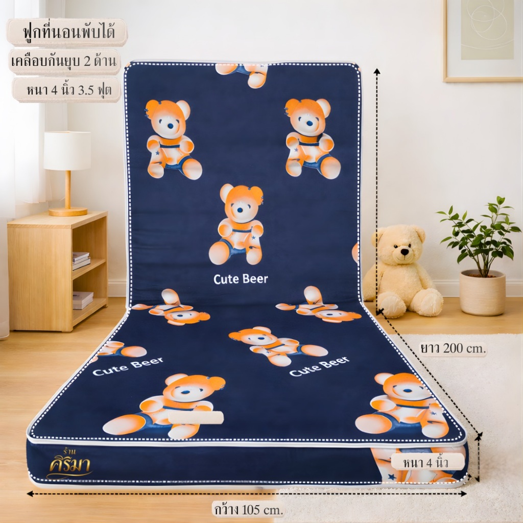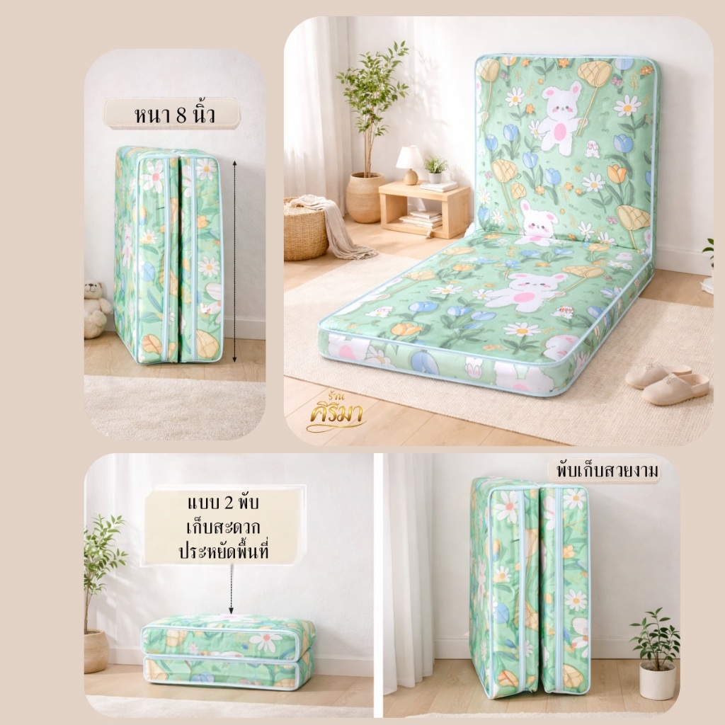 ฟูกที่นอนพับได้ หนา 4 นิ้ว 2 พับ เคลือบกันยุบ 2 ด้าน! นุ่มนอนฟิน ไม่ยุบตัว หลับสบาย 3.5 / 5 / 6 ฟุต