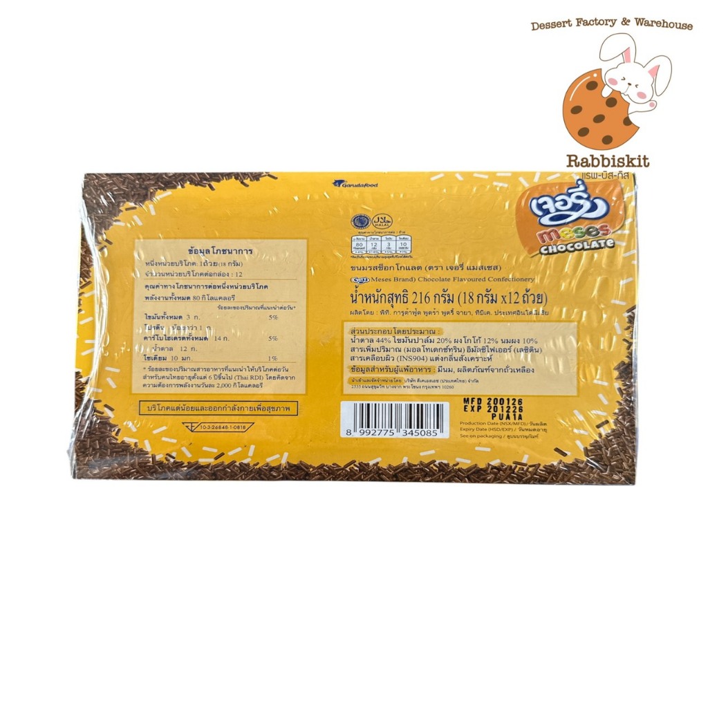 เกล็ดเจอรี่ (กล่อง) ขนมช็อกโกแลตเกล็ด Gery Meses กล่องละ 12 ถ้วย