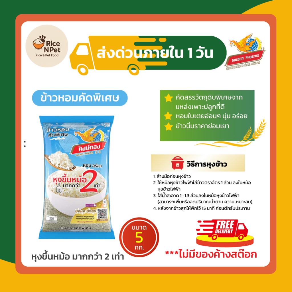 ข้าวหอม ตราหงส์ทองx6 ข้าวจากนาไทย สด สะอาด คุณภาพดี นุ่ม หอม อร่อย