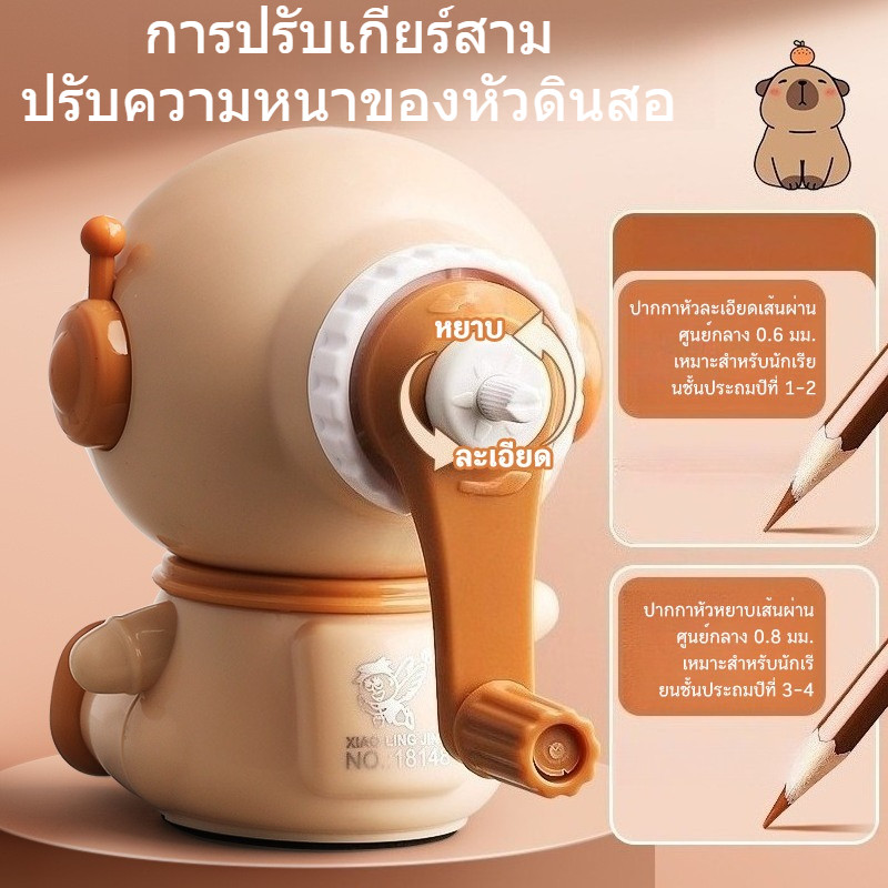 กบเหลาดินสอคาปิบารา การ์ตูนน่ารัก แบบมือหมุน ป้อนดินสออัตโนมัติ การปรับเกียร์สาม ปรับความหนาของหัวดินสอ สําหรับนักเรียน