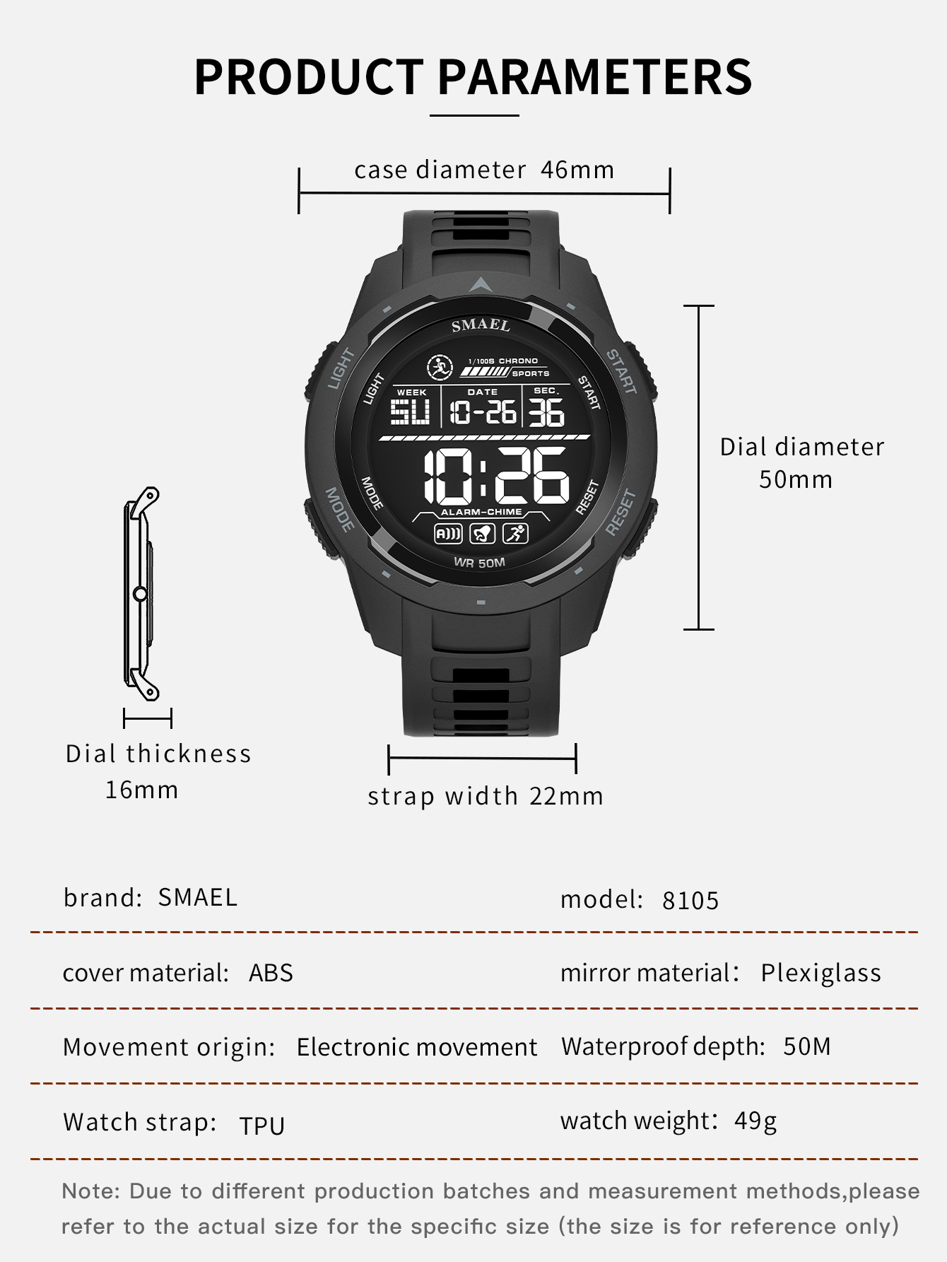 SMAEL 8105 Ana Digi Sport Watch 50M กันน้ํา Dual Display Unisex