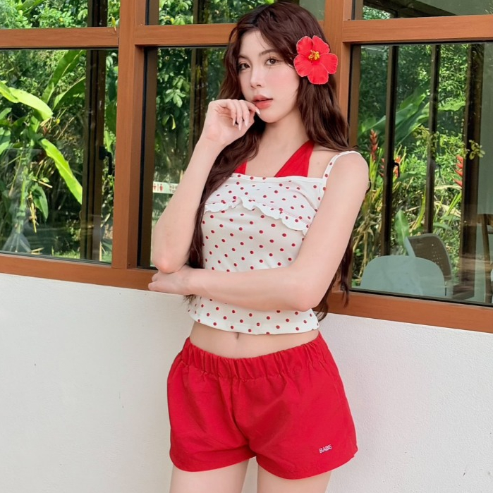 (พร้อมส่งทุกสี)BABEJUB.X l BABY NYLON กางเกงขาสั้น เอวต่ำ ผ้าไนลอน แห้งไวววว
