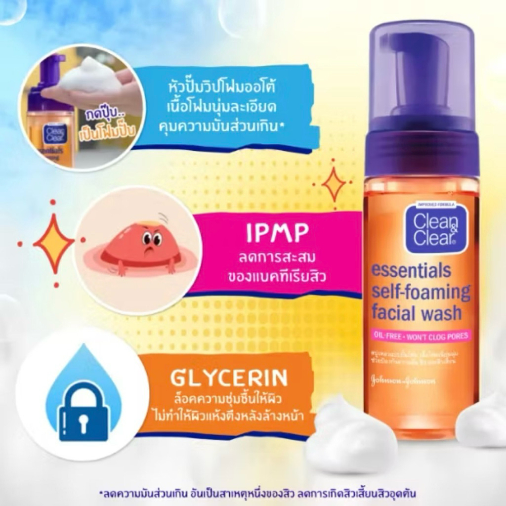 Clean & clear Foaming face wash 100ml และ 150ml คลีน แอนด์ เคลียร์ โฟมล้างหน้า