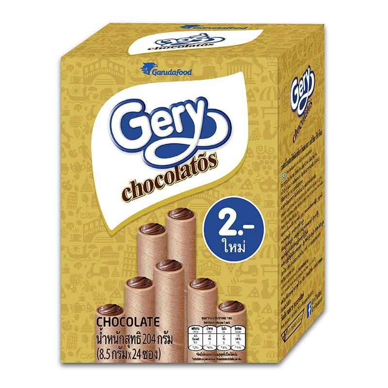 [ 2 กล่อง ] เจอรี่ ช็อกโก้ลาโตส เวเฟอร์สอดไส้ครีมช็อกโกแลต 7กรัมx24ซอง