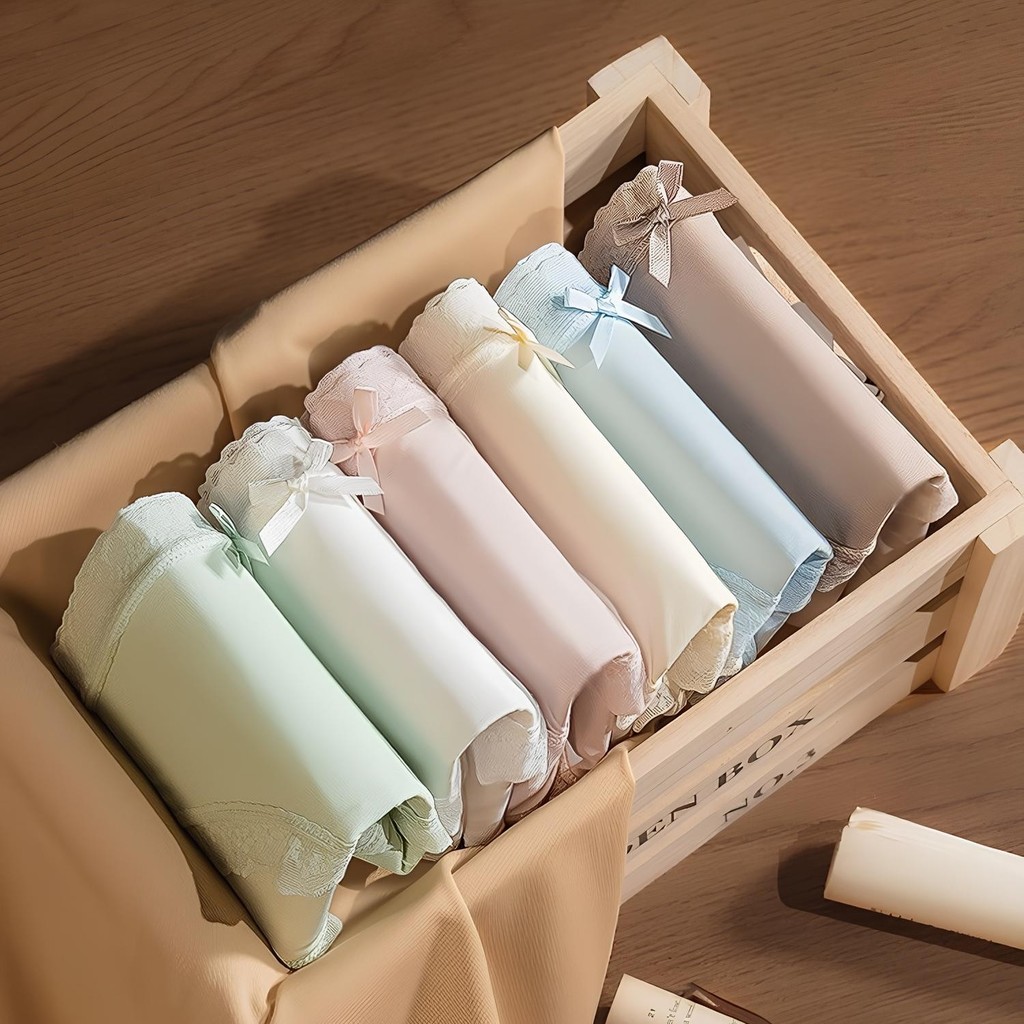 กางเกงในลูกไม้ดีไซน์มินิมอล แฝงความหวานละมุน ใส่แล้วทรงสวย ผ้าเนียนลื่นนุ่ม ไม่บางเกินไป ระบายอากาศดี ไม่อับชื้น