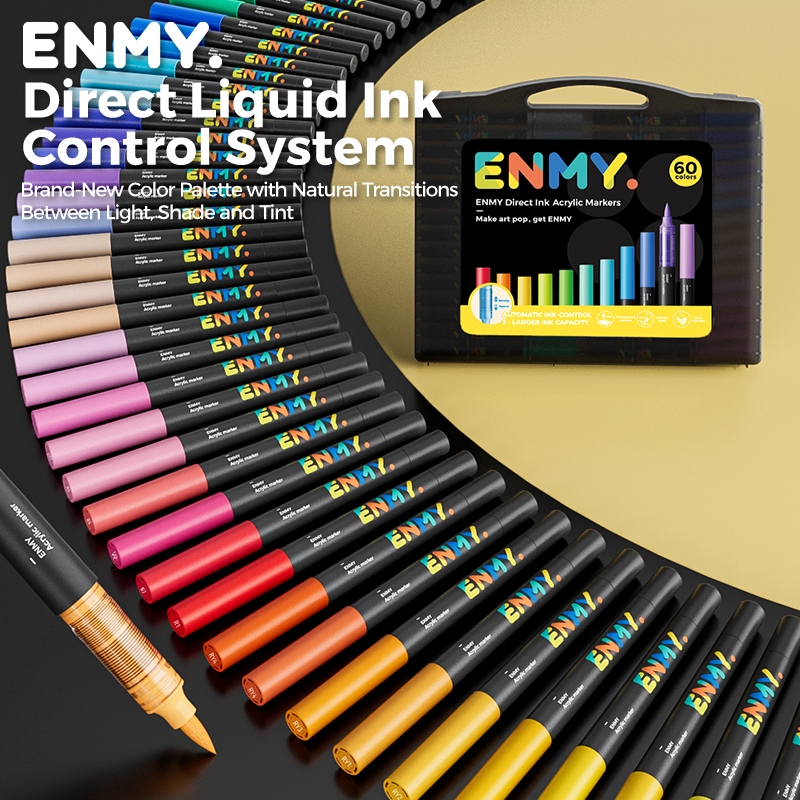 ENMY กล่องสีดํา 80 สีอะคริลิค Marker Soft Tip ปากกาสีวาดระบายสีภาพวาด Art ปากกา