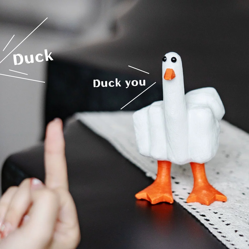 ตุ๊กตารูปเป็ดรูปปั้น ลายเป็ดนิ้วกลางโมเดลฟิกเกอร์ ของแต่งบ้าน พร็อบถ่ายรูปน่ารักๆ นิ้วกลางน่ารัก DUCKYOU