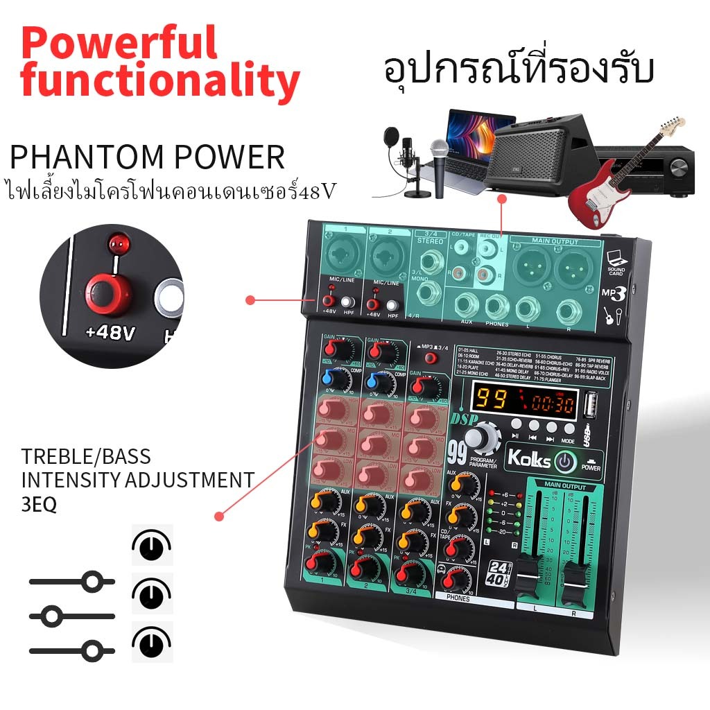 มิกเซอร์มืออาชีพ 4/6 Channel mixer/Scream Prevention มิกเซอร์ 99DSP/AUDIO MIXER