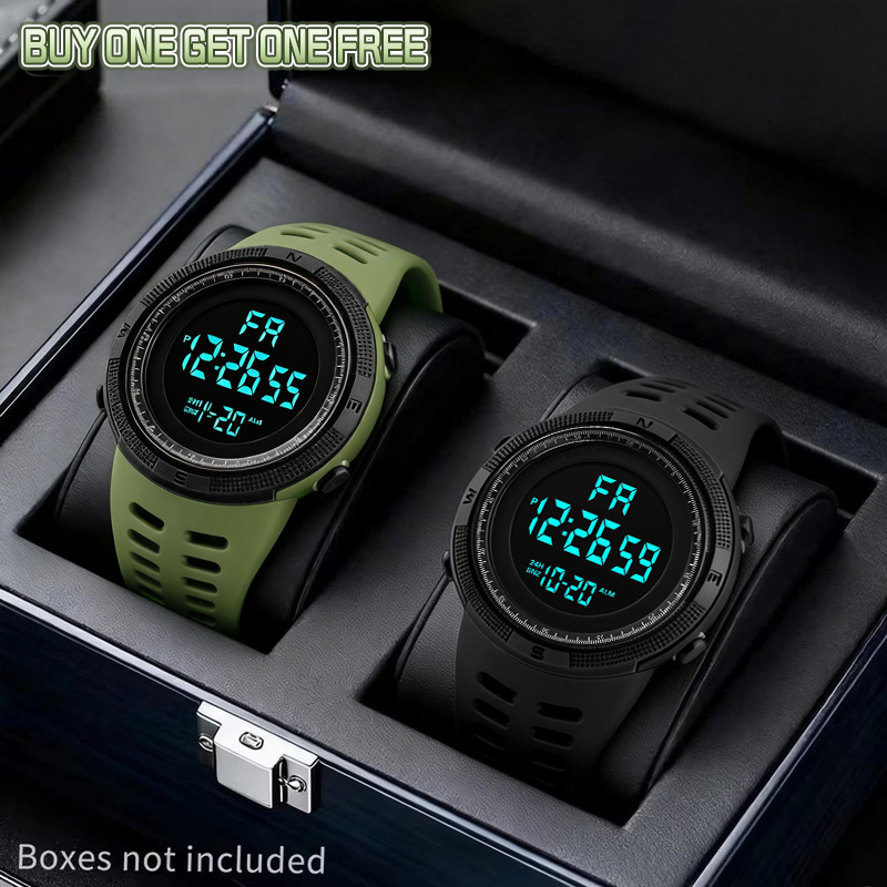 ผู้ชายกีฬานาฬิกาดิจิตอลสําหรับผู้ชาย ชุด 2 ชิ้นกันน้ําและกันกระแทกพร้อมนาฬิกาปลุกนาฬิกาจับเวลาและฟังก์ชั่นส่องสว่างของขวัญเหมาะ