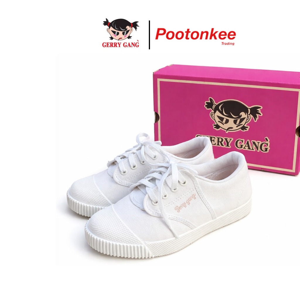 *สินค้าลดราคา* Gerry Gang รองเท้านักเรียนหญิง รุ่น FW-008 / FW-008VL รองเท้าผ้าใบสีขาวไม่มีกล่อง เบอร์31-43 พร้อมส่ง