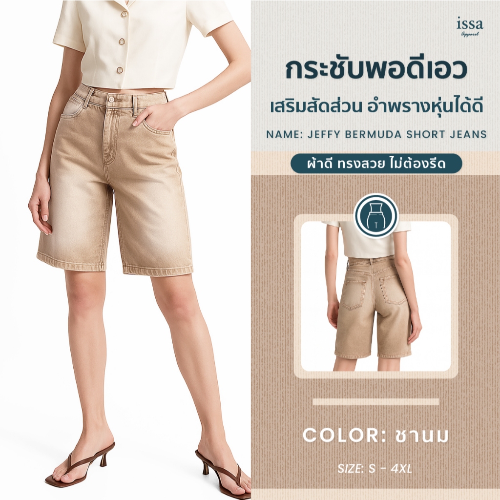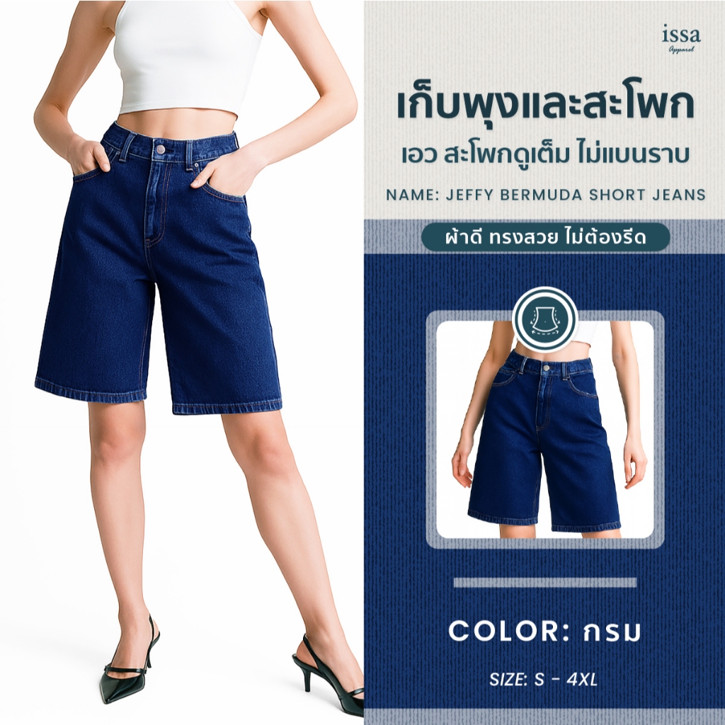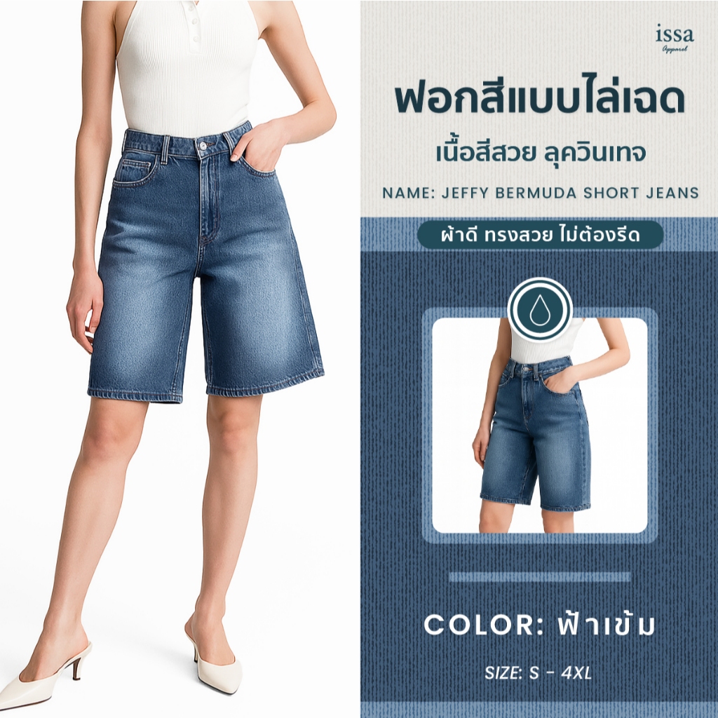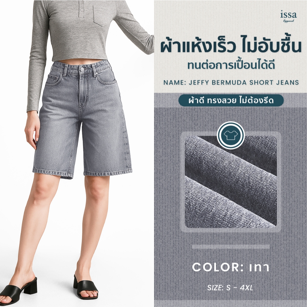 Jeffy bermuda short jeans กางเกงยีนส์ 5 ส่วน เหนือเข่ากำลังดี ผ้ายีนส์คอตตอนเนื้อแน่นนุ่ม ใส่สบายทั้งวัน งานเย็บเก็บดี