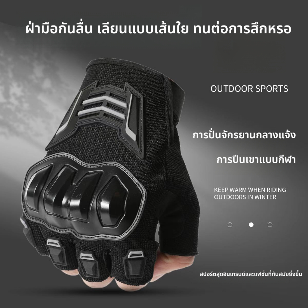 ถุงมือมอเตอร์ไซค์ ถุงมือกีฬา ถุงมือครึ่งนิ้ว ระบายอากาศดี ป้องกันการลื่น ซับเหงื่อ ระบายอากาศดี M-XL