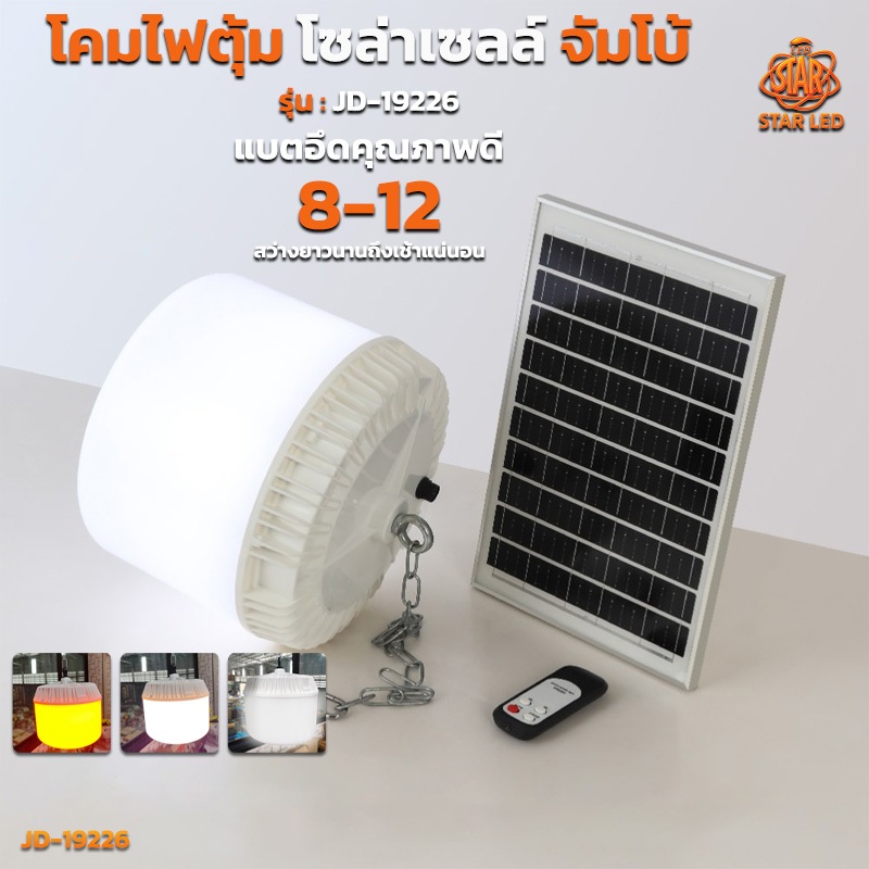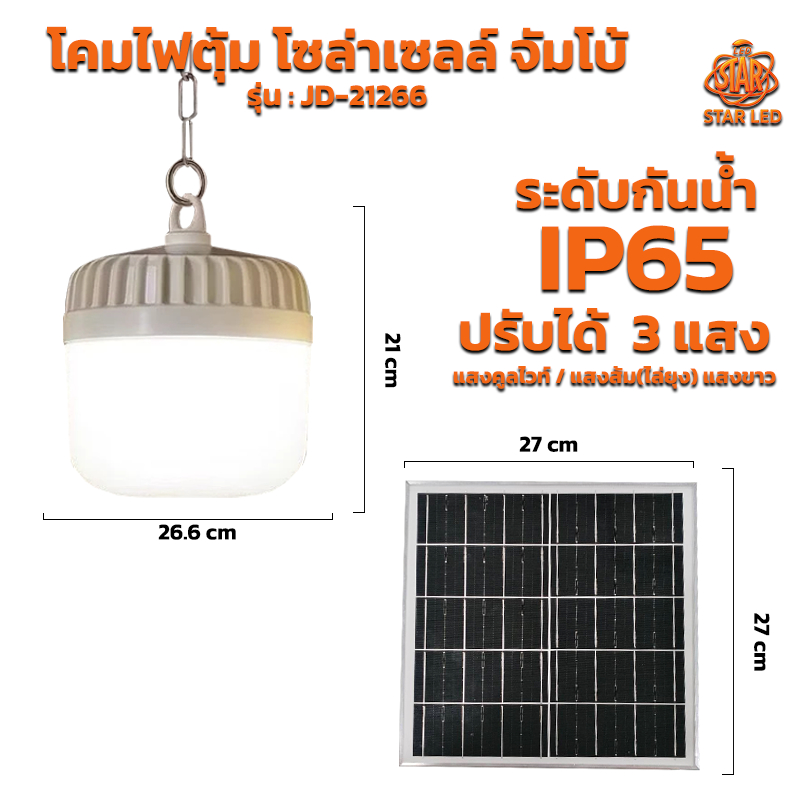 โคมไฟตุ้มโซล่าเซลล์ จัมโบ้ รุ่น สปอร์ตไลท์โซล่าเซลล์ ไฟตั้งแคมป์ LED Solar light สว่างจ้า กันฝนกันฟ้าผ่า สินค้ารับประกั
