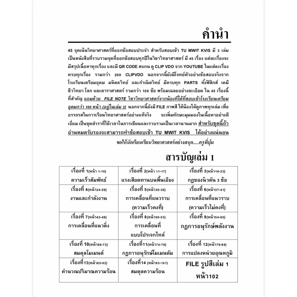 ออกใหม่ล่าสุด 45 จุดเน้นวิทย์สอบเข้า TU MWIT KVIS มี 3 เล่ม การันตรีโดยน้อง Gifted เตรียมอุดม มี qr code ดู vdo