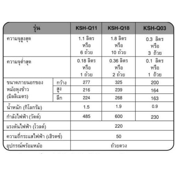 SHARP หม้อหุงข้าว 0.3 ลิตร รุ่น KSH-Q03