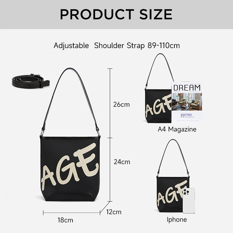 AGE FREE Mini Gabine - กระเป๋าสะพายไหล่ กระเป๋าทรงถัง กระเป๋าถือสำหรับผู้หญิง ความจุขนาดใหญ่ Bucket bag