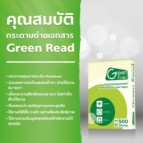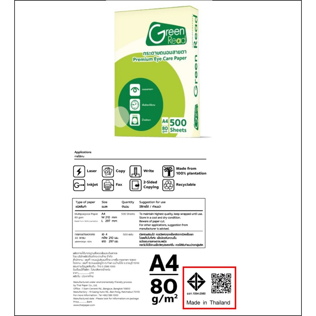 [ส่งฟรี!] Green Read กระดาษถ่ายเอกสารถนอมสายตา 80 แกรม A4 บรรจุ 1 รีม