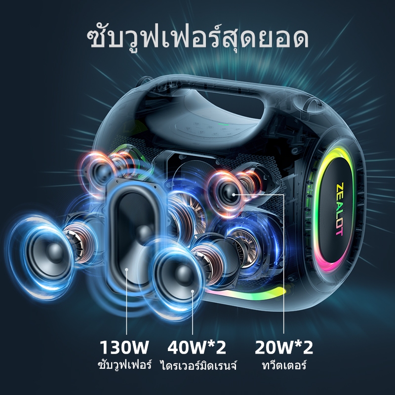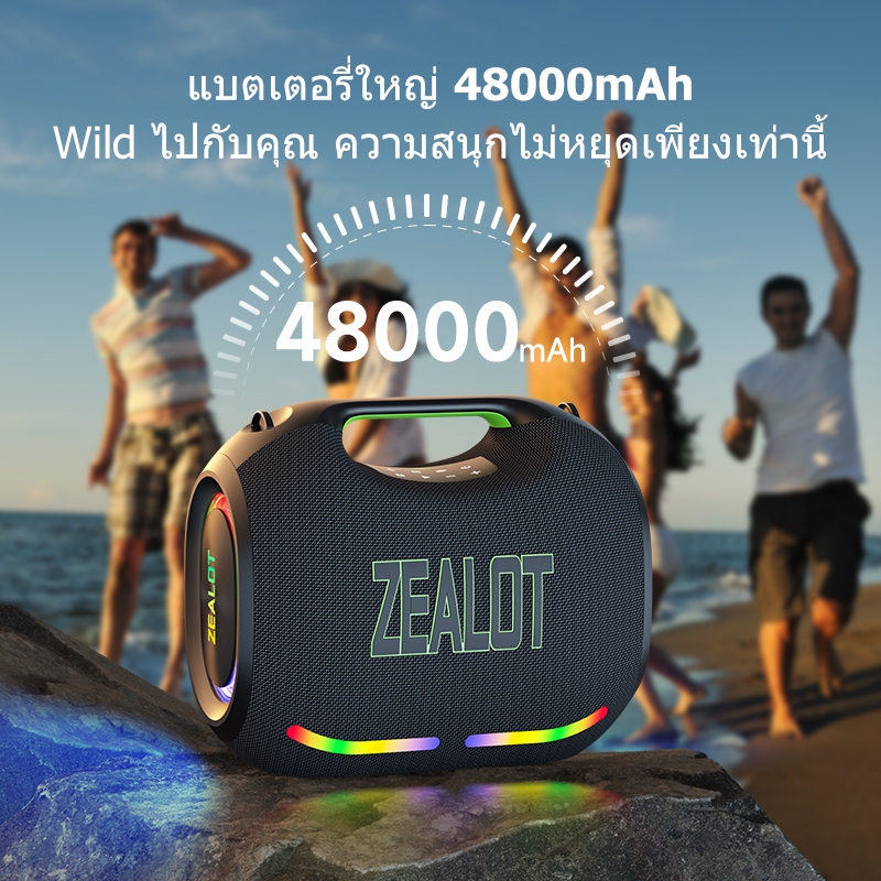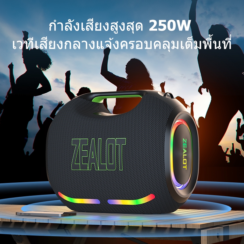 ZEALOT ZE21 ลําโพงบลูทูธ 250W ที่มีประสิทธิภาพเบสลําโพงไร้สายแบบพกพา 48000mAh Power Bank กันน้ํากลางแจ้ง Type-C Fast Charging ลําโพง