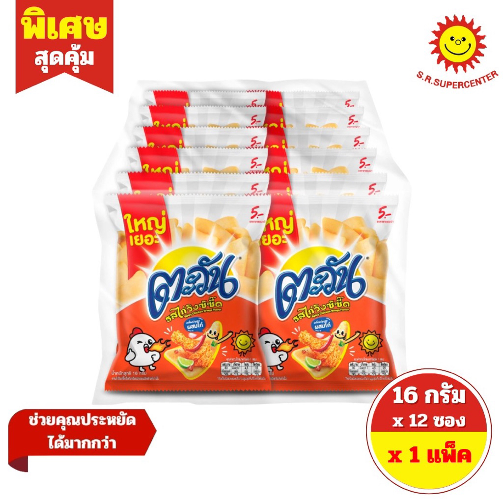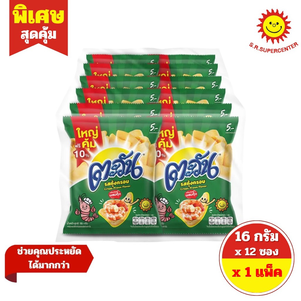 [ 1 แพ็ค ] Tawan ตะวัน ข้าวเกรียบ ซองรุ่น5บาท ขนาด 16 กรัม x 12 ซอง 6 รสชาติ